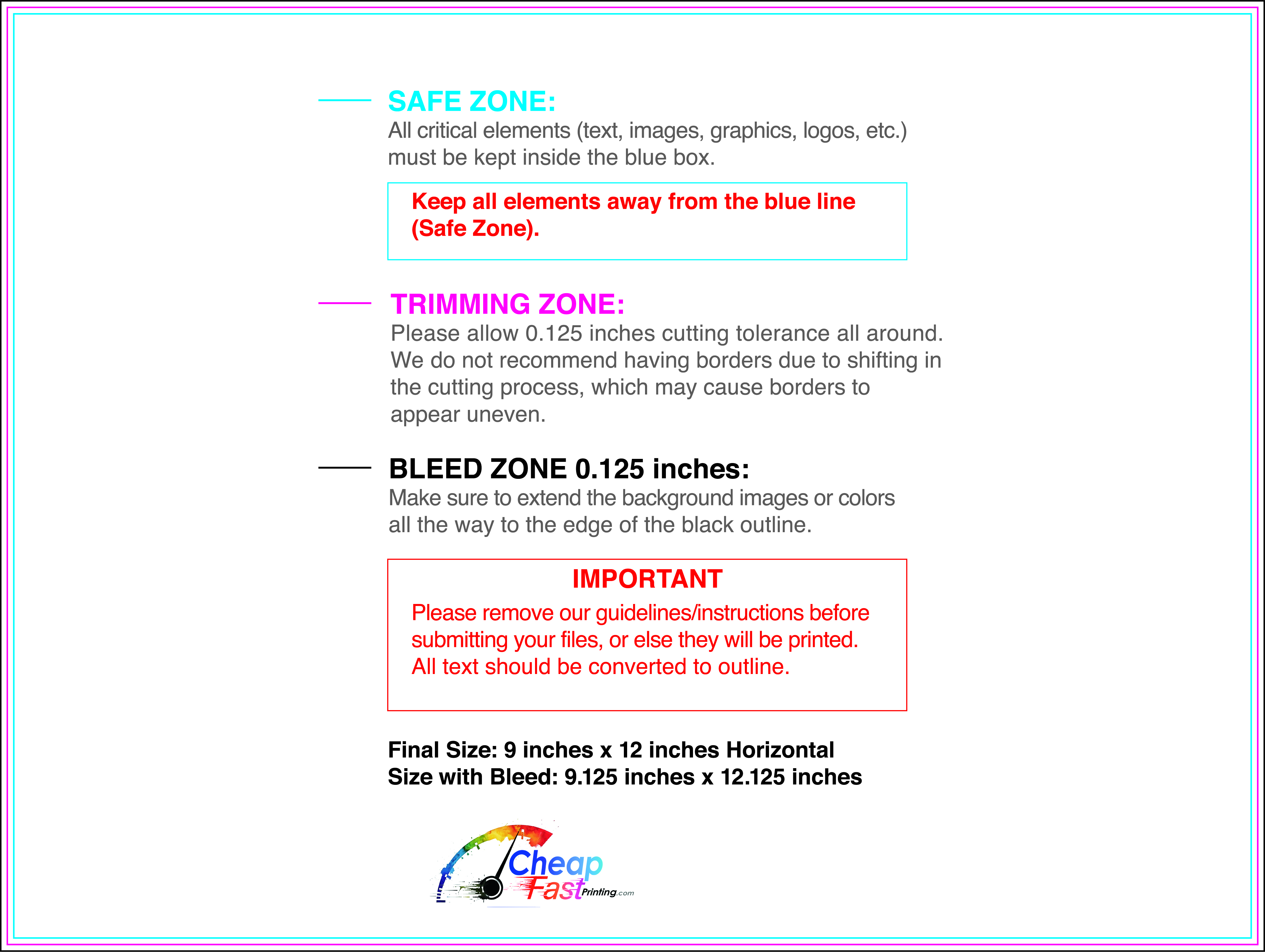 Use the 9x12 template to keep margins consistent and reserve space for availability and CTA blocks.