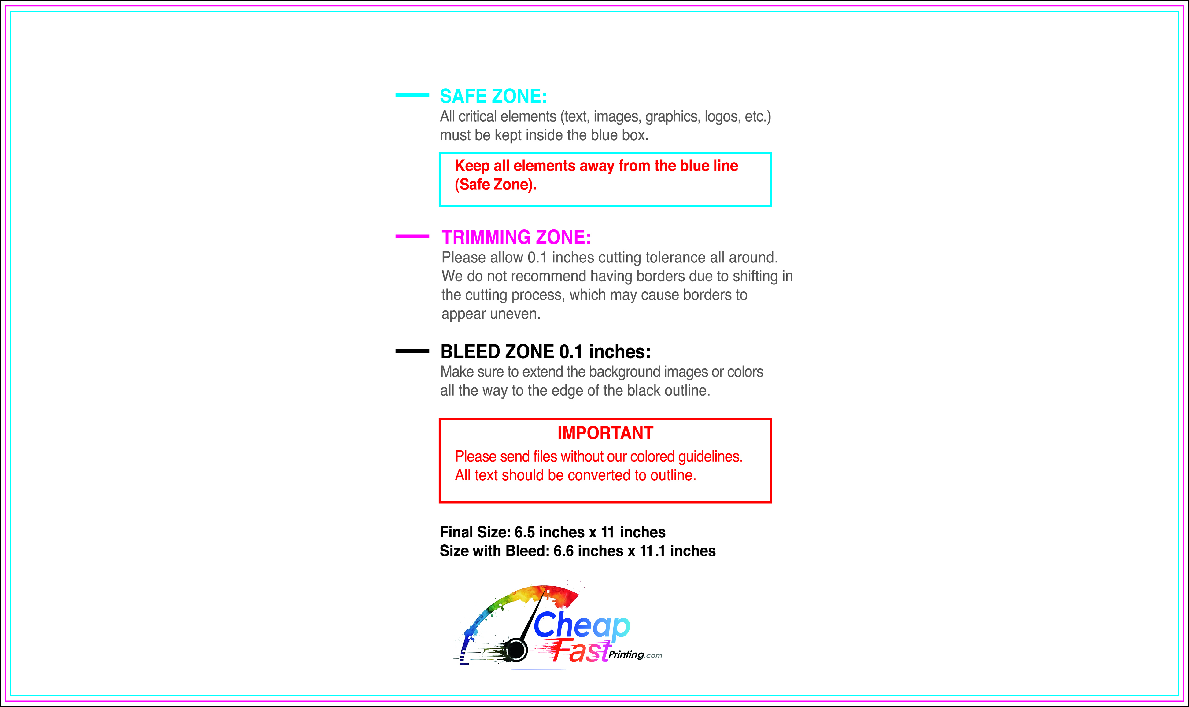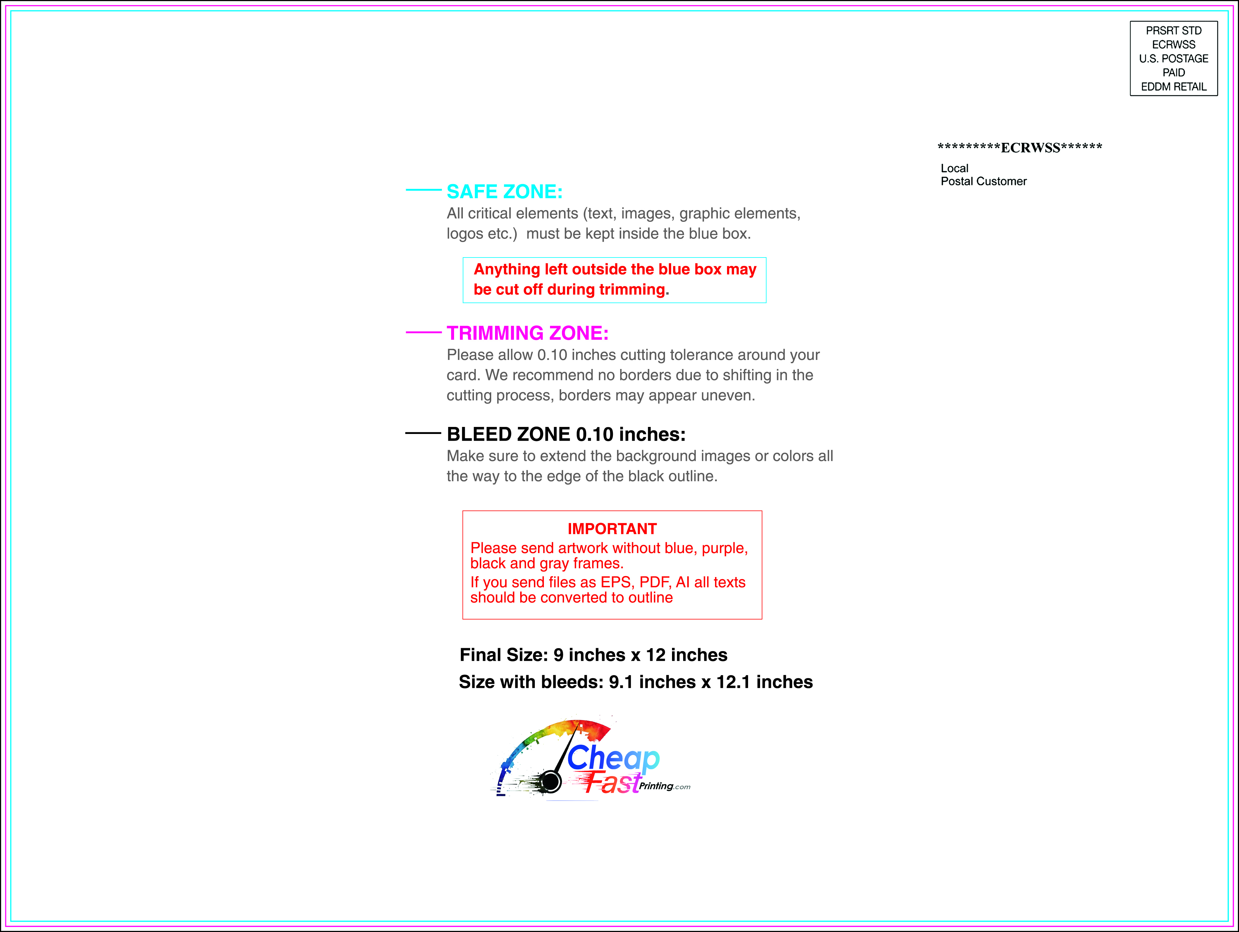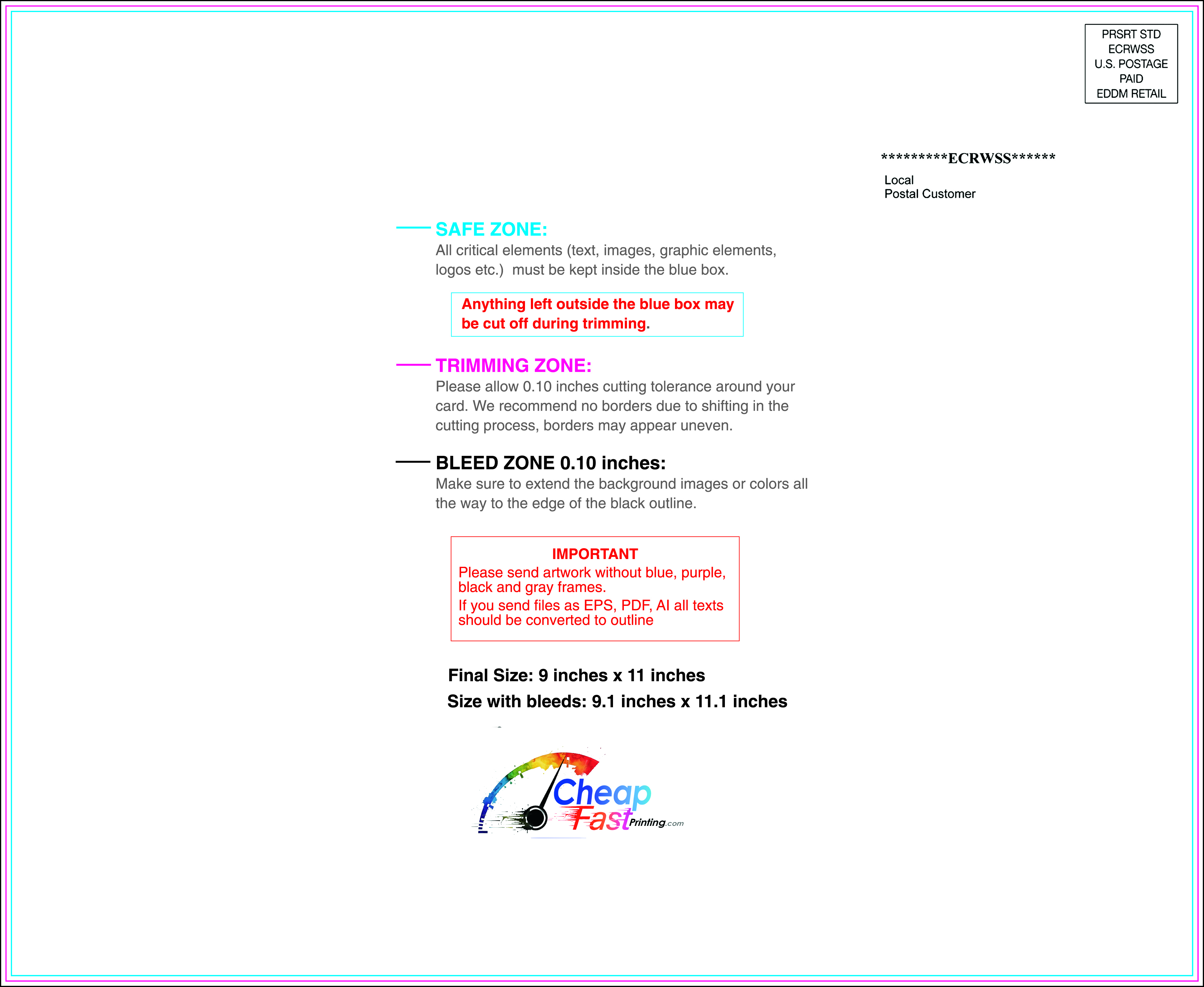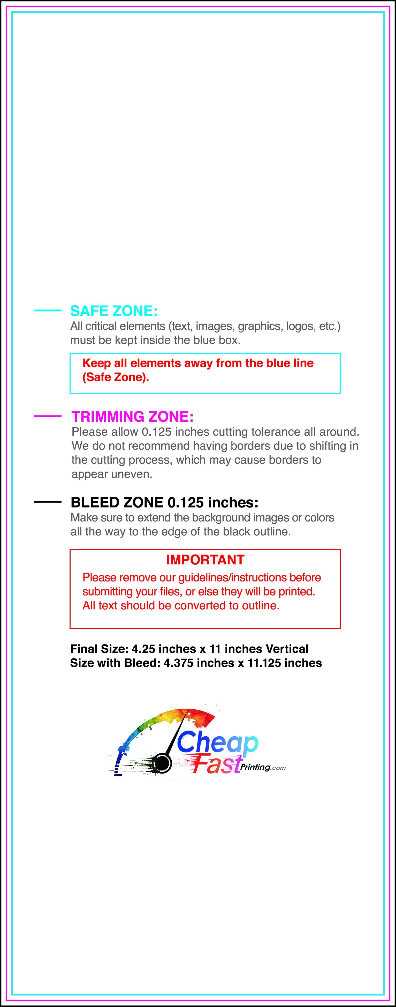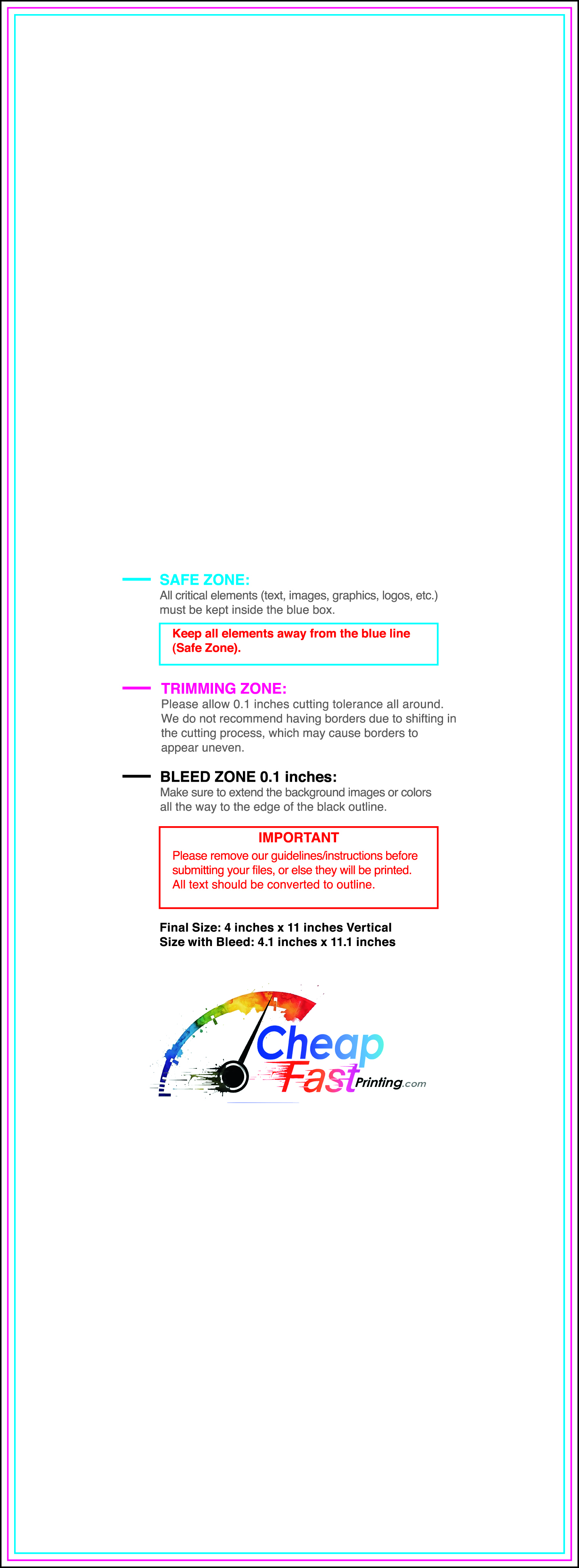 We recommend reviewing the "safe zone" markers within each file. This area ensures that your logos, contact information, and critical text remain safely away from the cutting blade. In our years of experience, a project that ignores these markers often requires a costly reprint, something we want to help you avoid.