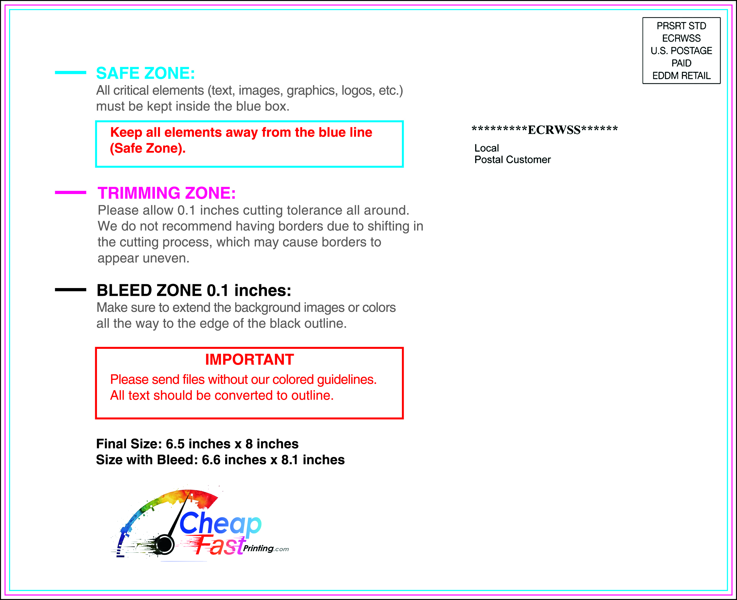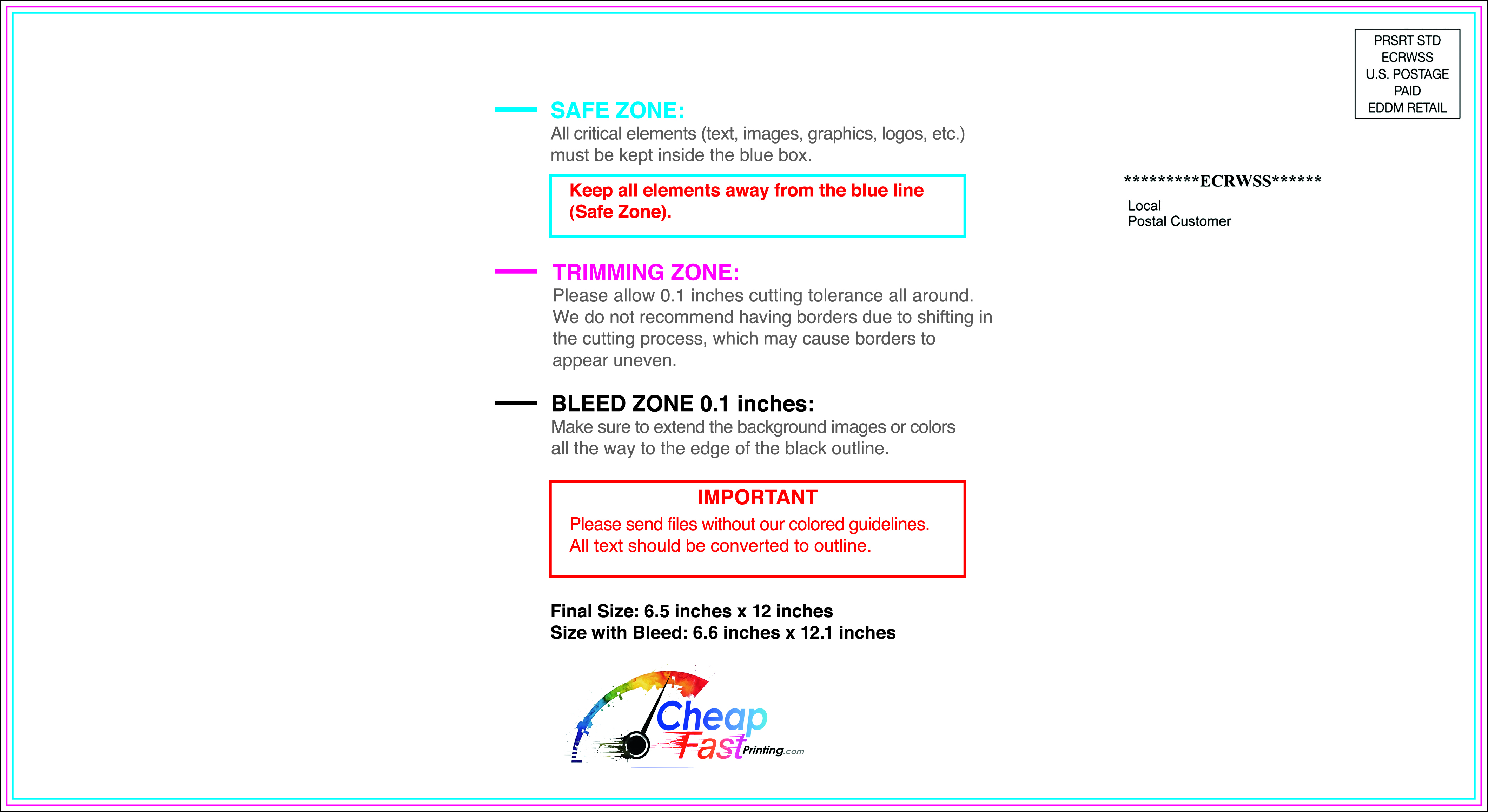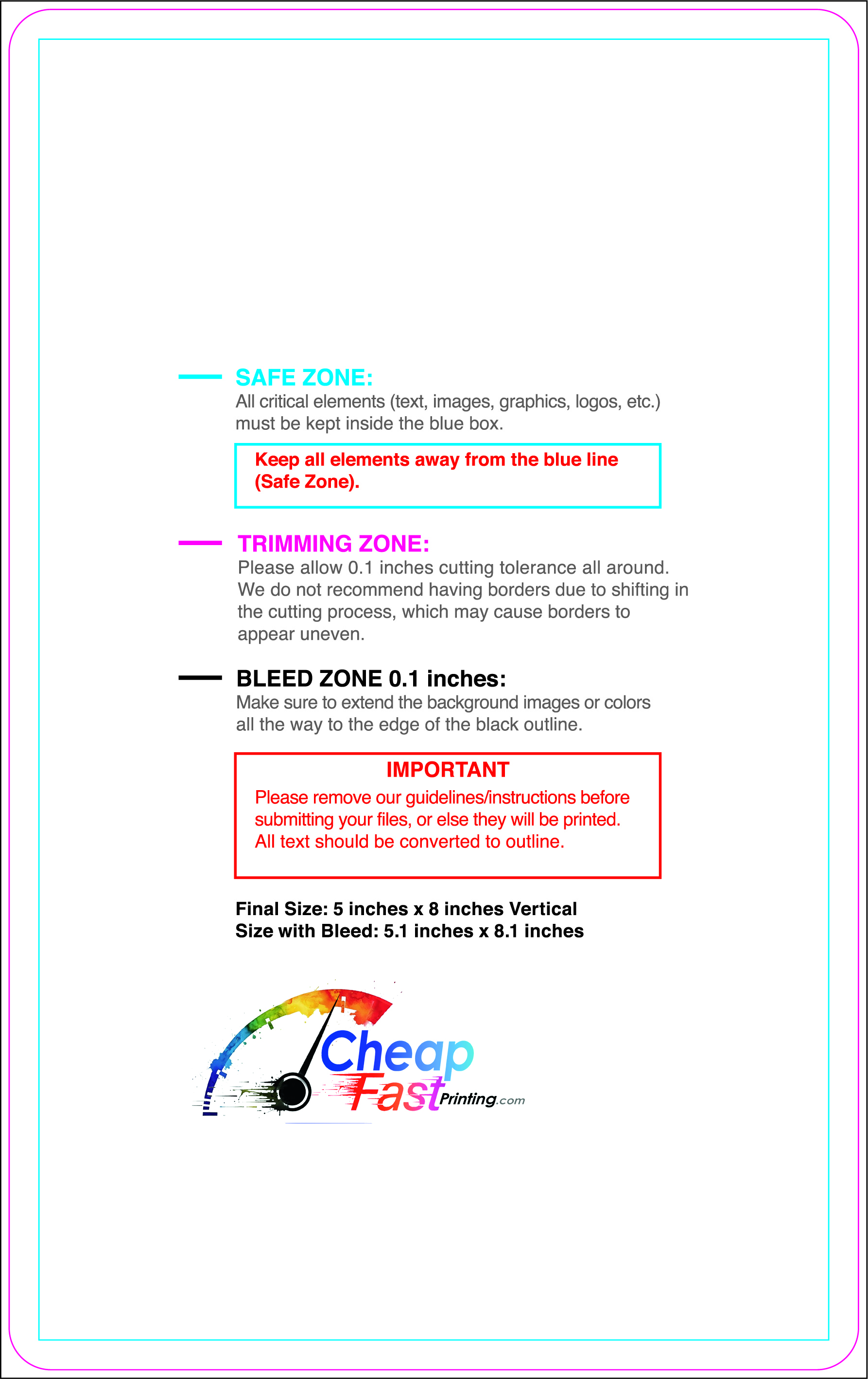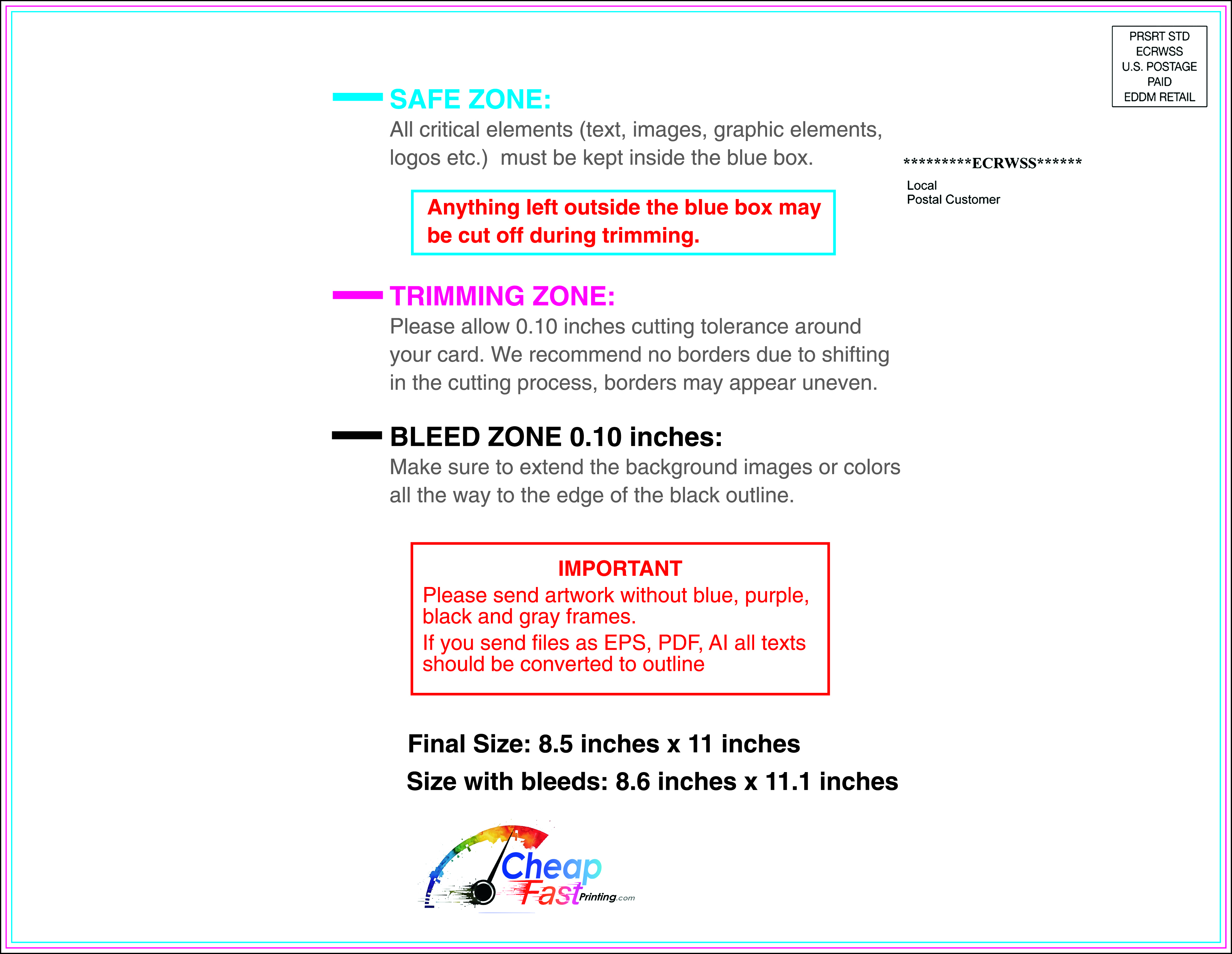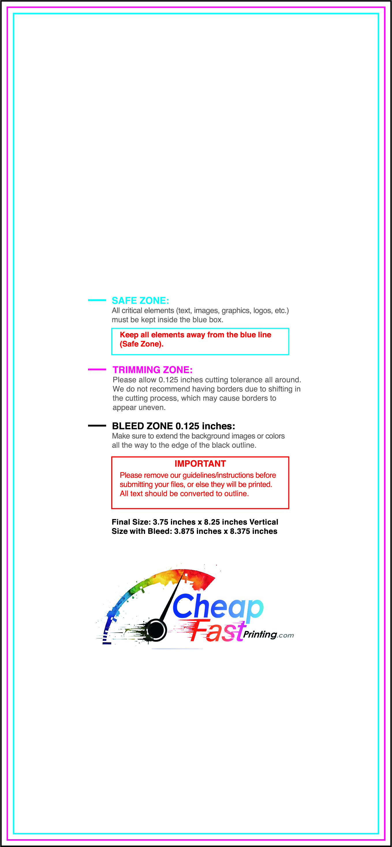 We recommend reviewing the "safe zone" markers within each file. This area ensures that your logos, contact information, and critical text remain safely away from the cutting blade. In our years of experience, a project that ignores these markers often requires a costly reprint, something we want to help you avoid.