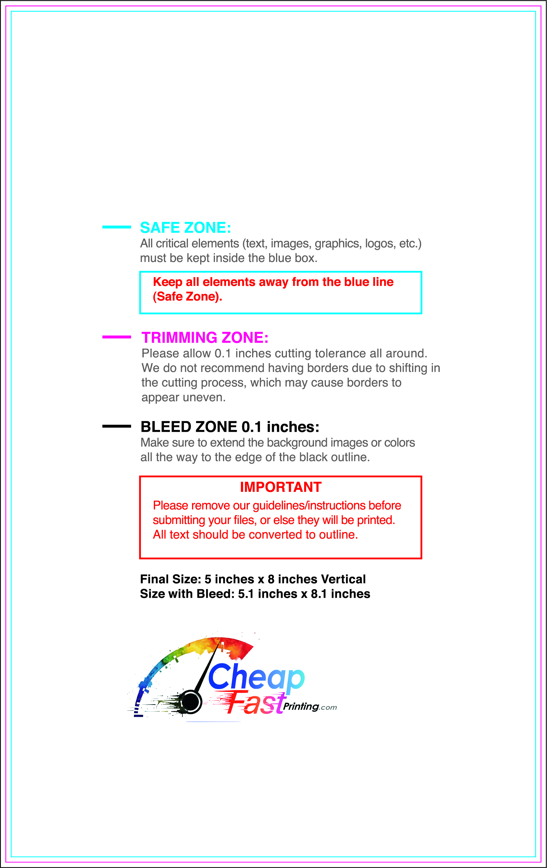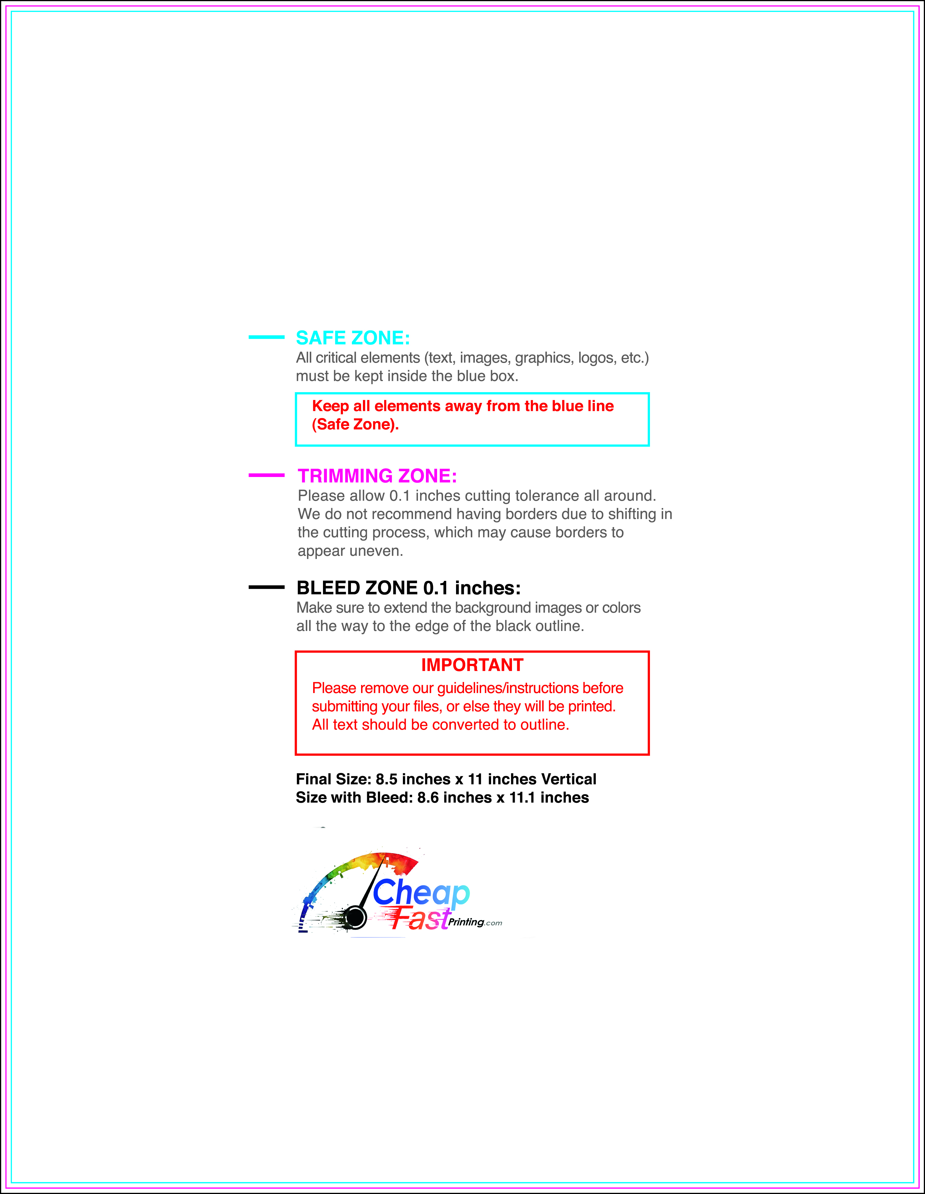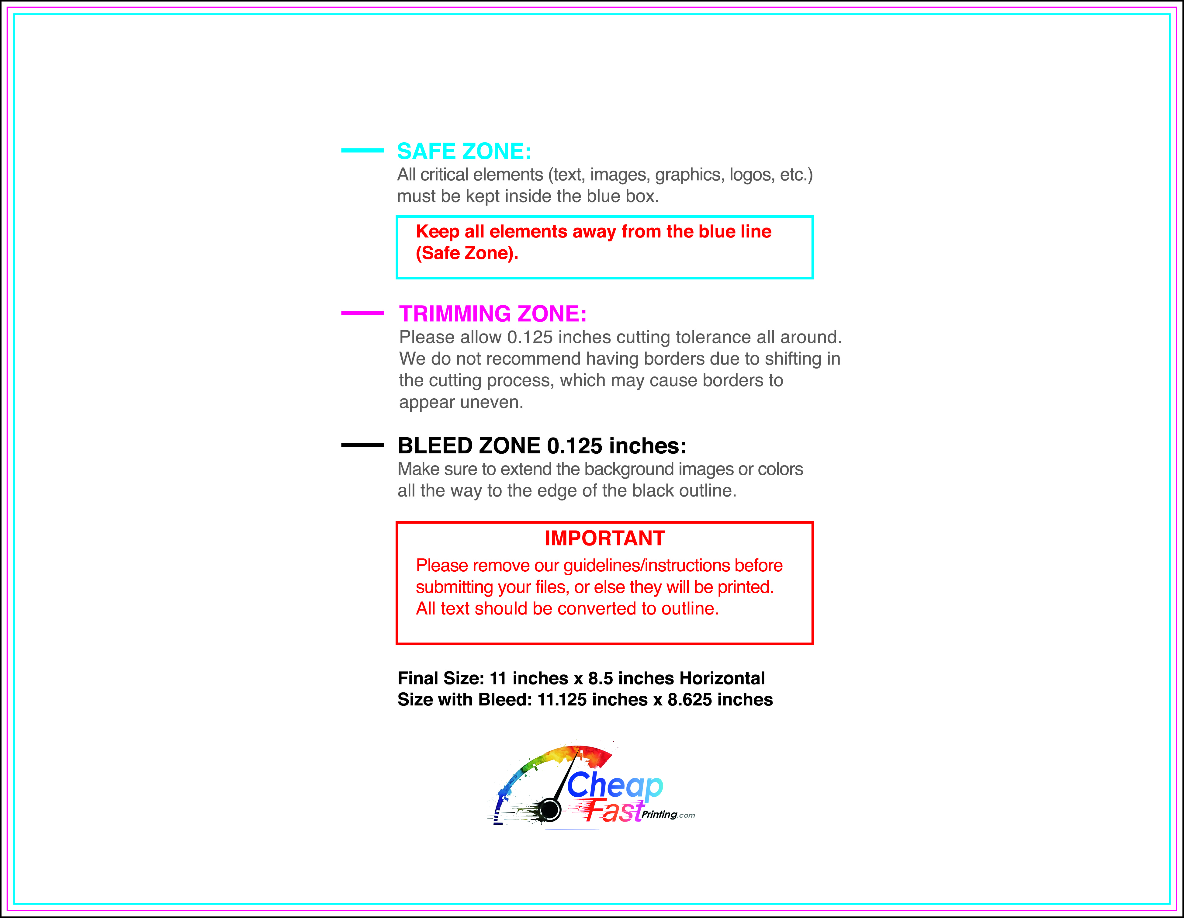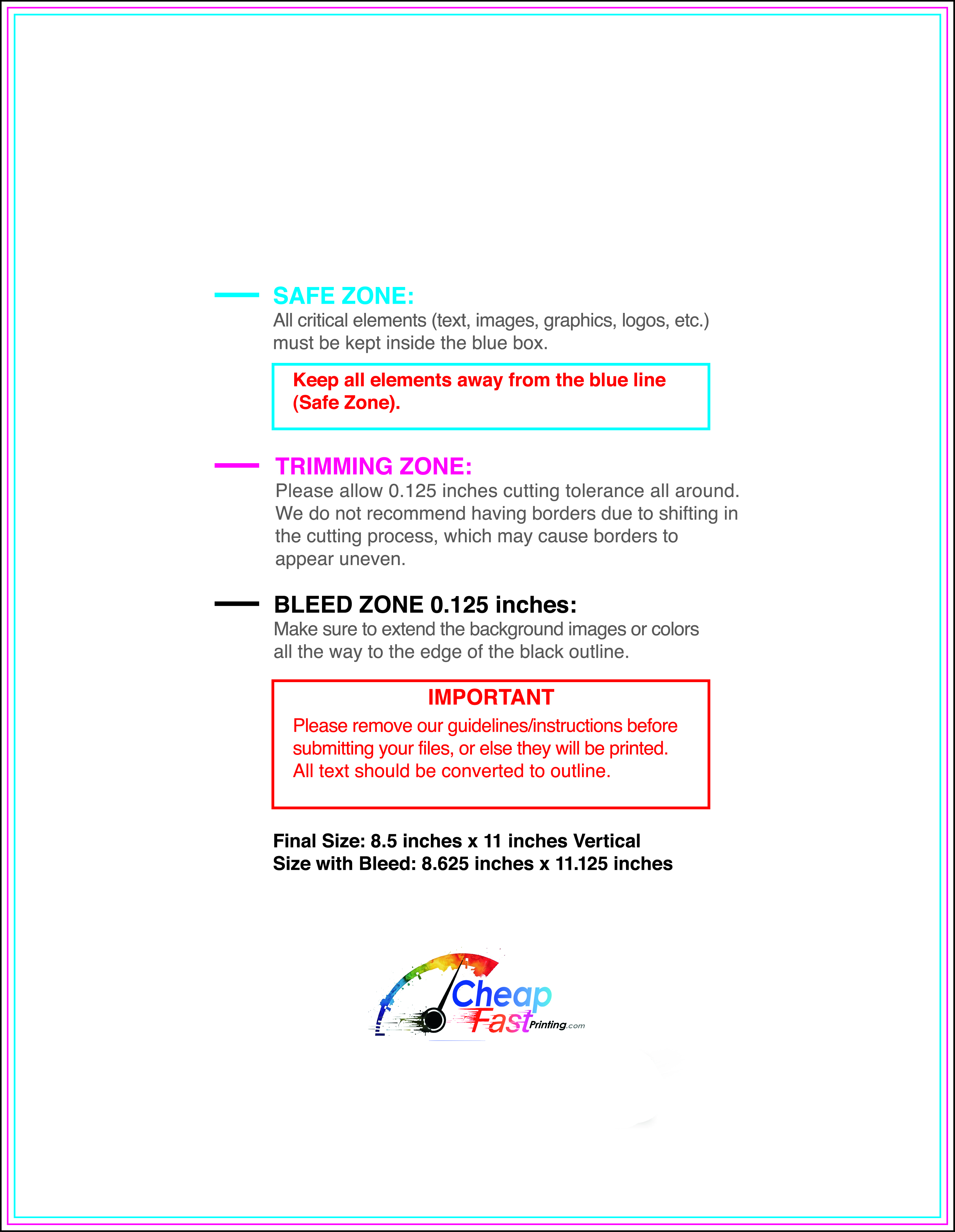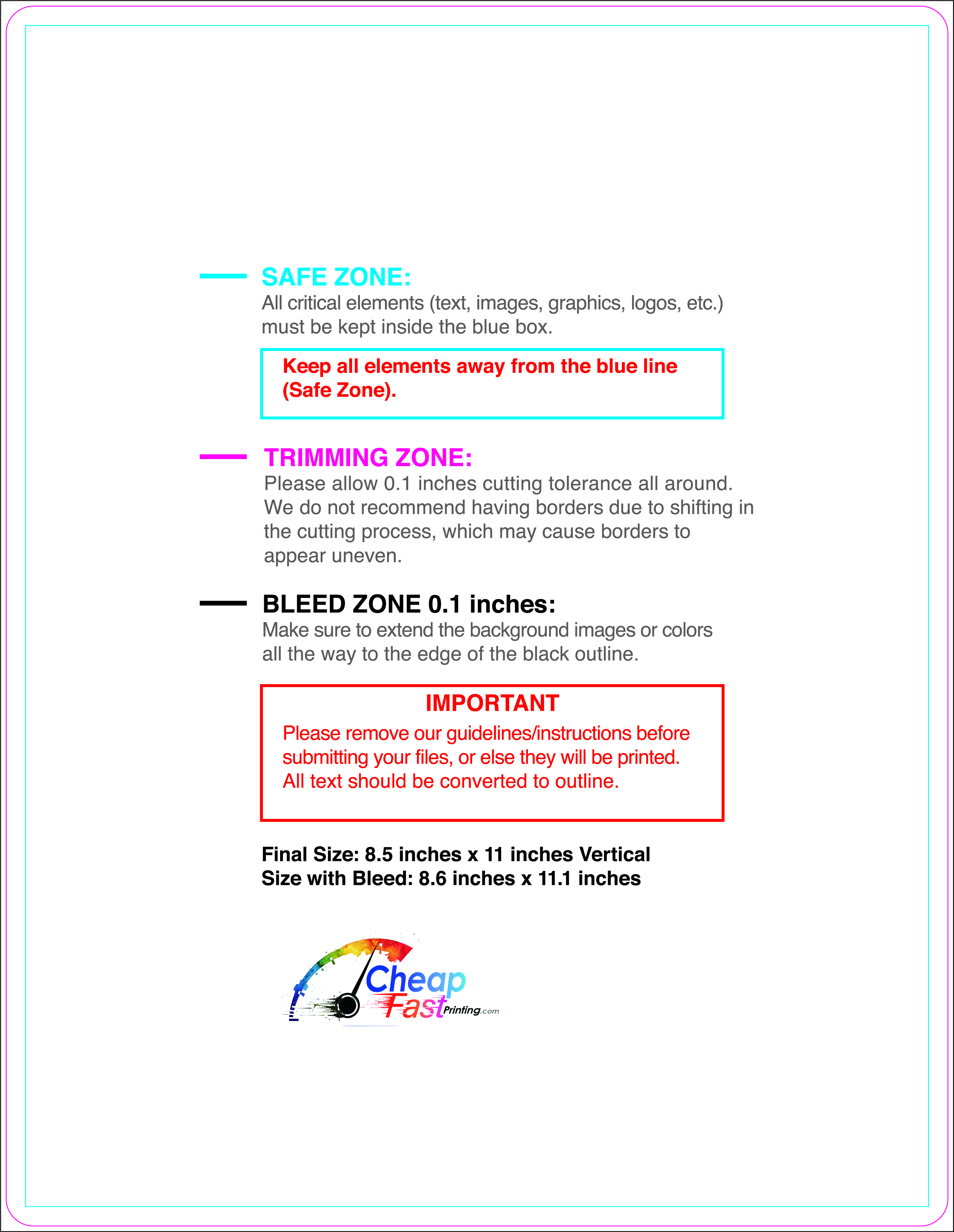 We recommend reviewing the "safe zone" markers within each file. This area ensures that your logos, contact information, and critical text remain safely away from the cutting blade. In our years of experience, a project that ignores these markers often requires a costly reprint, something we want to help you avoid.