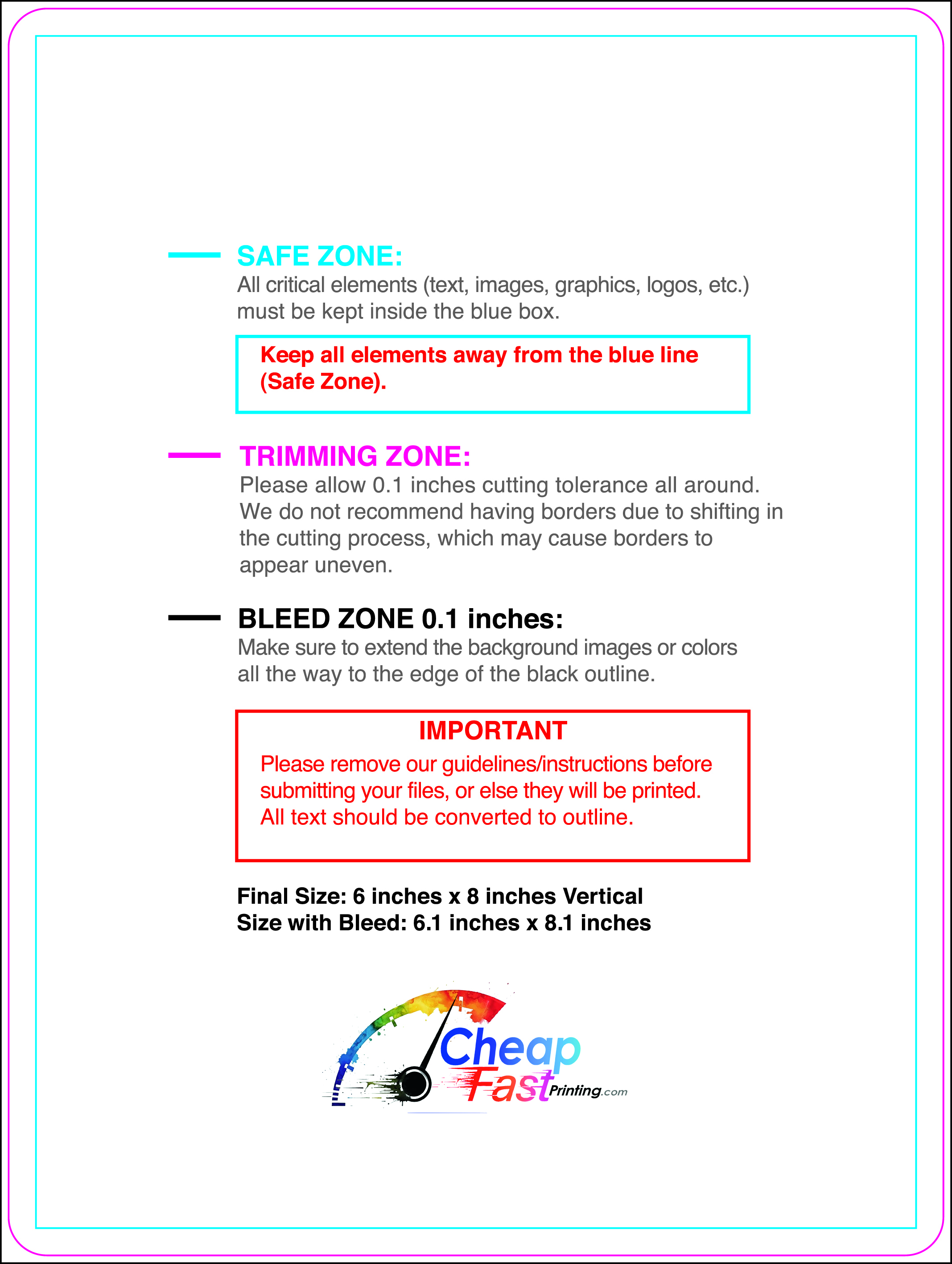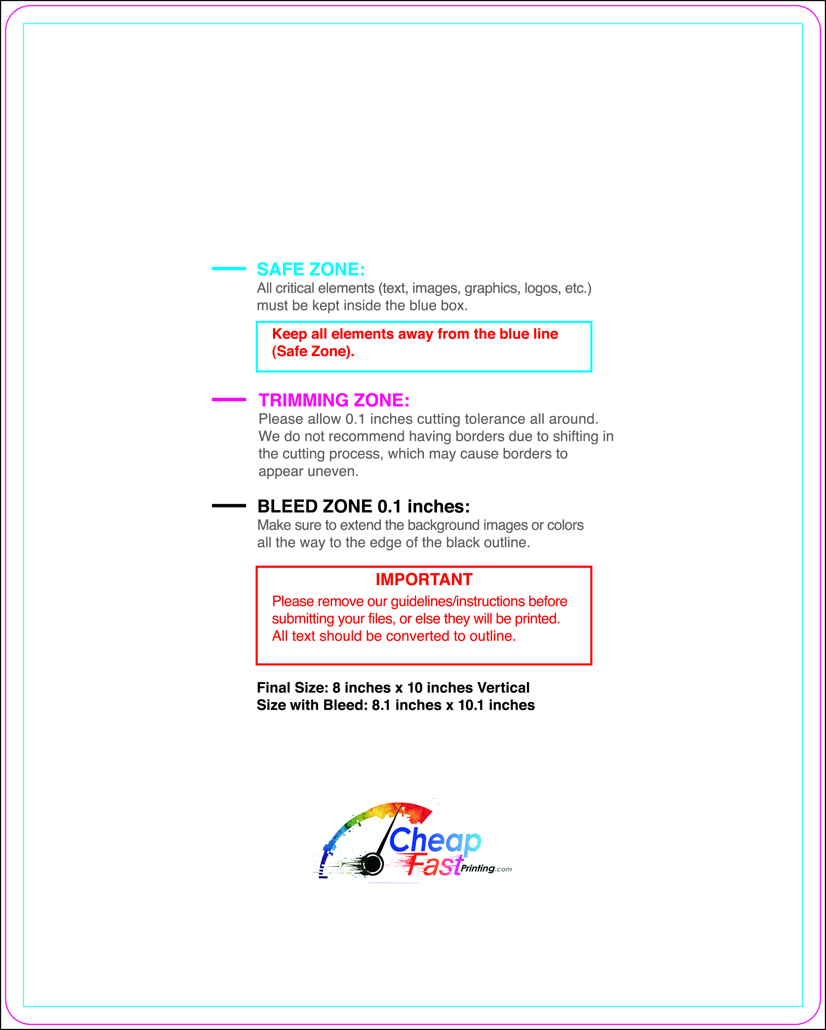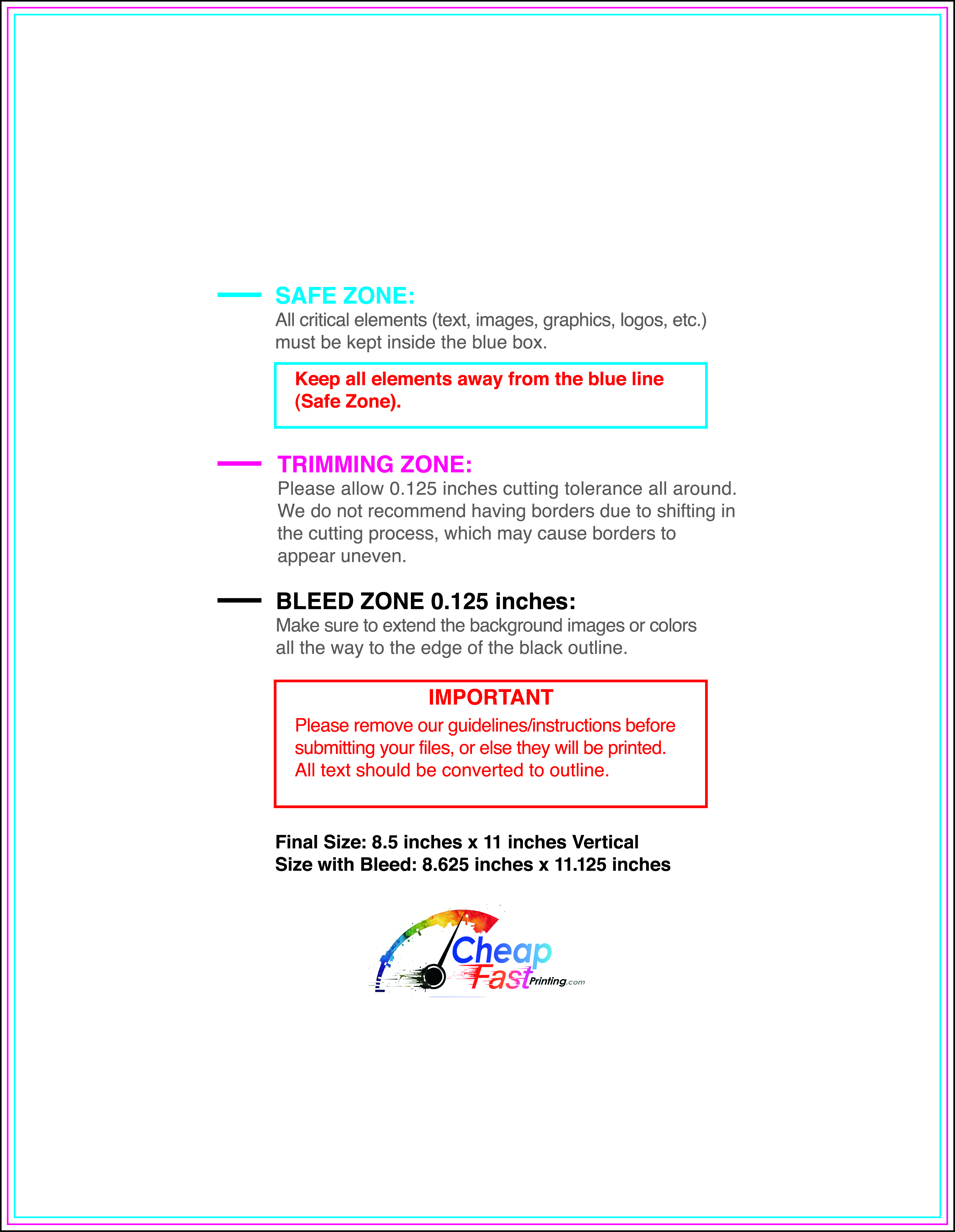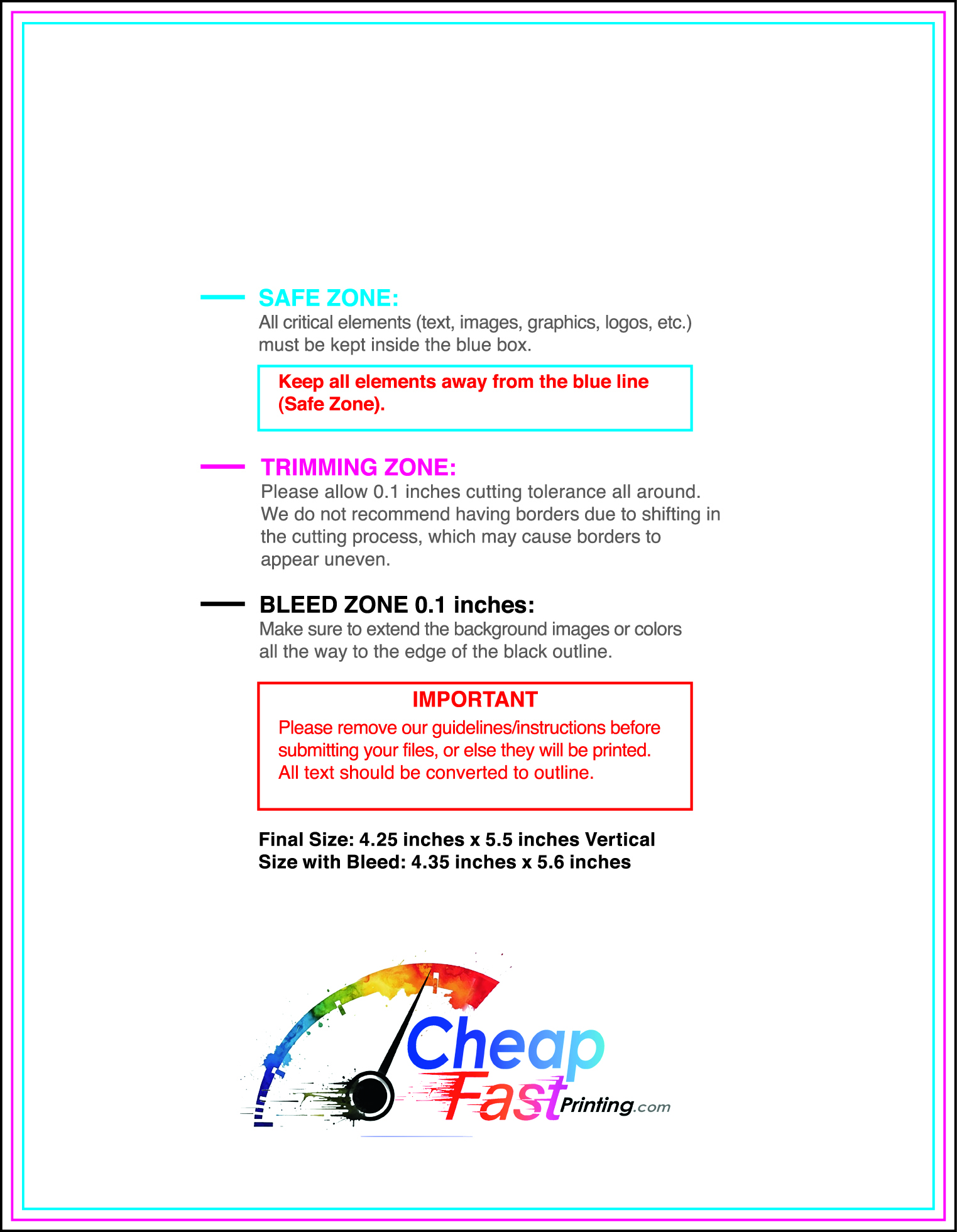 We recommend reviewing the "safe zone" markers within each file. This area ensures that your logos, contact information, and critical text remain safely away from the cutting blade. In our years of experience, a project that ignores these markers often requires a costly reprint, something we want to help you avoid.