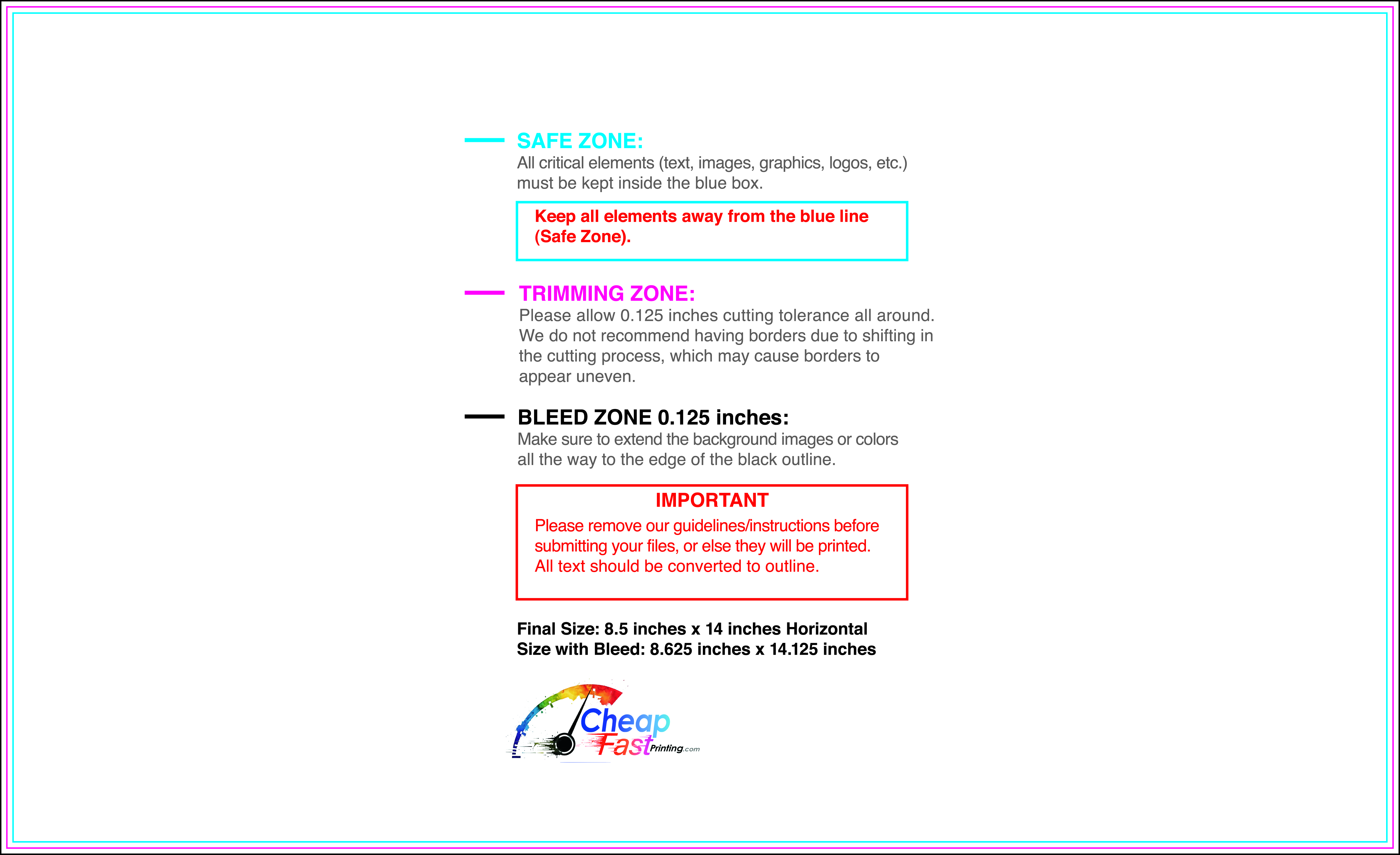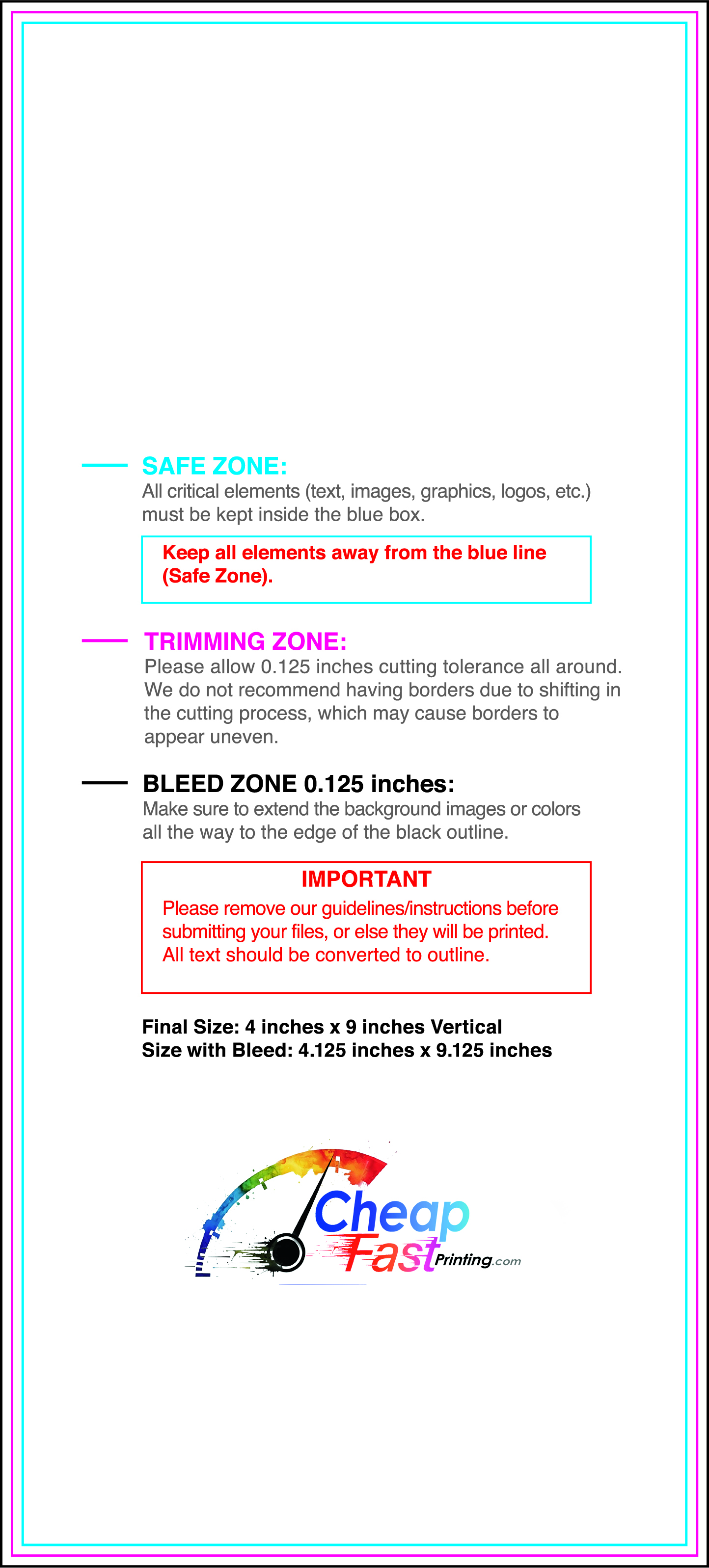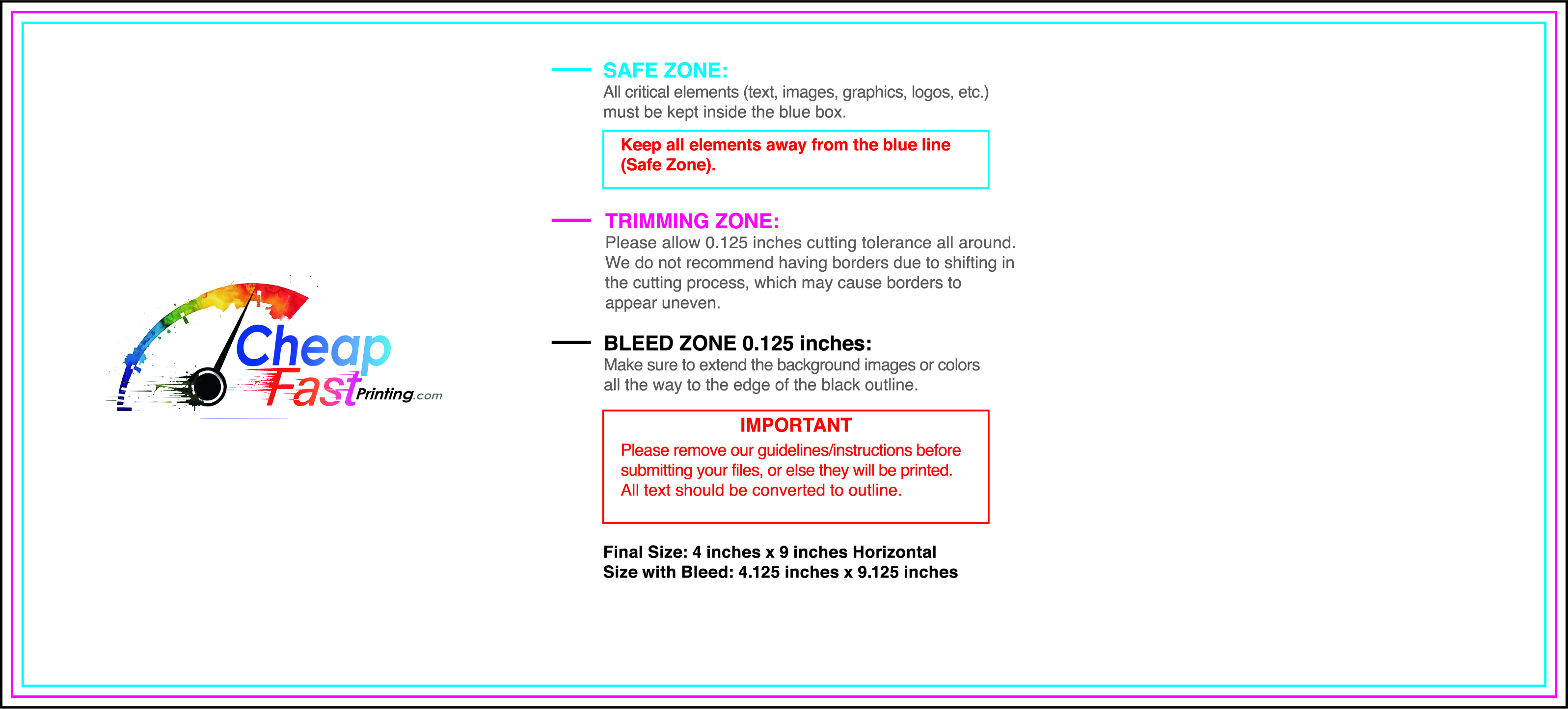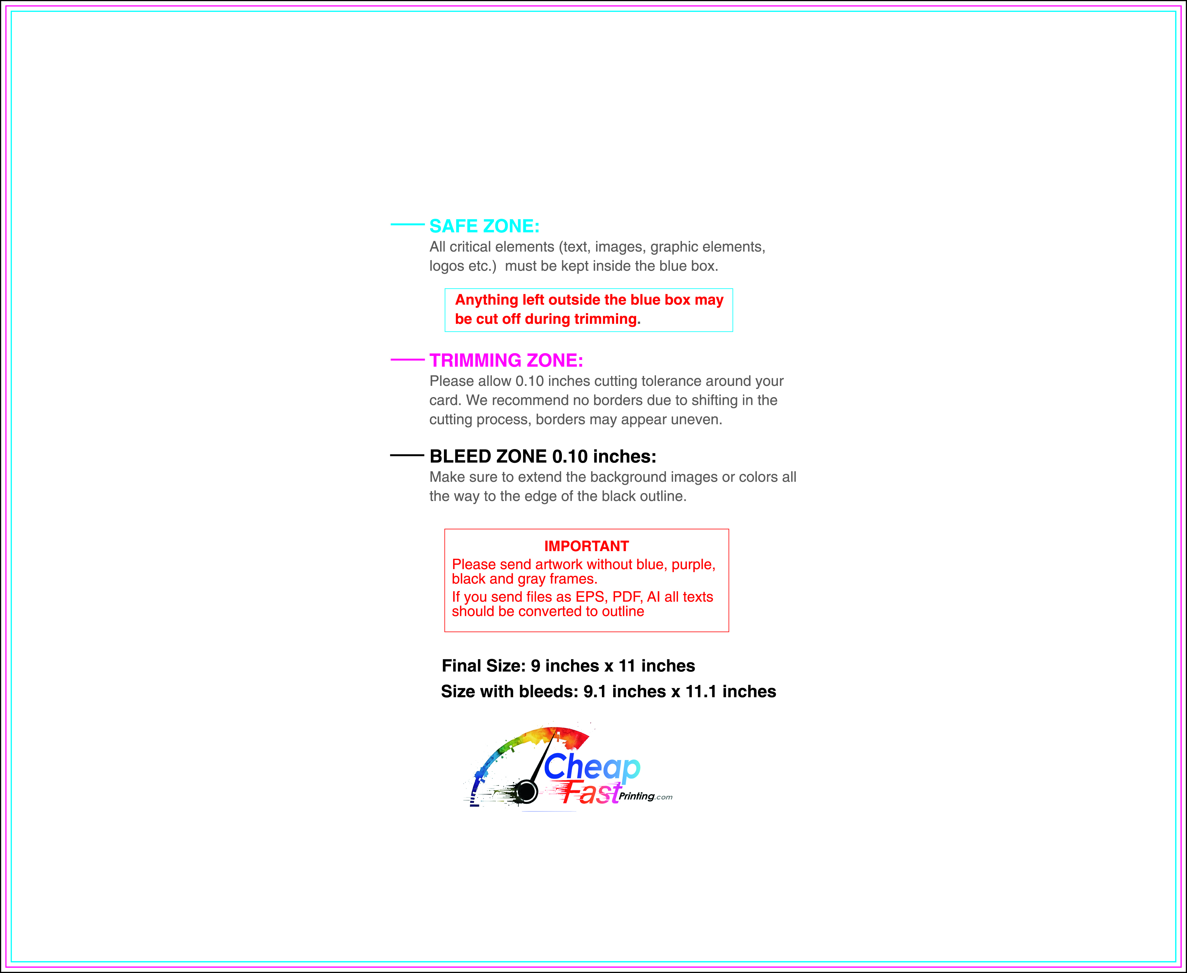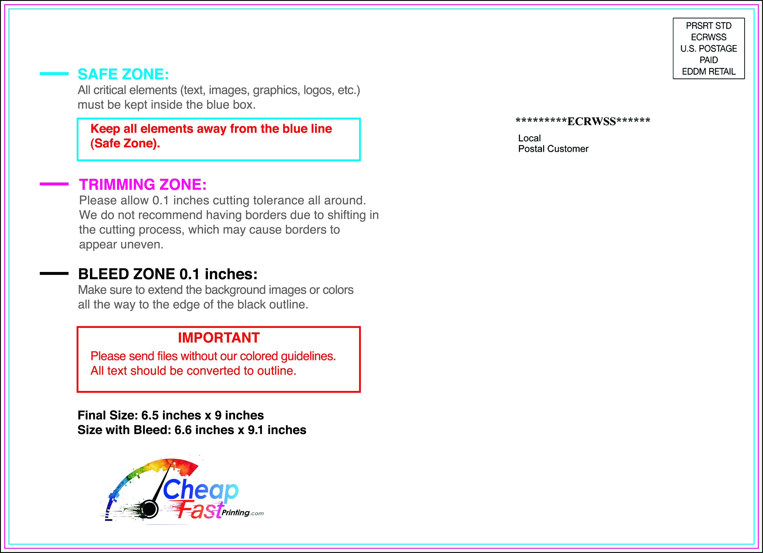 We recommend reviewing the "safe zone" markers within each file. This area ensures that your logos, contact information, and critical text remain safely away from the cutting blade. In our years of experience, a project that ignores these markers often requires a costly reprint, something we want to help you avoid.