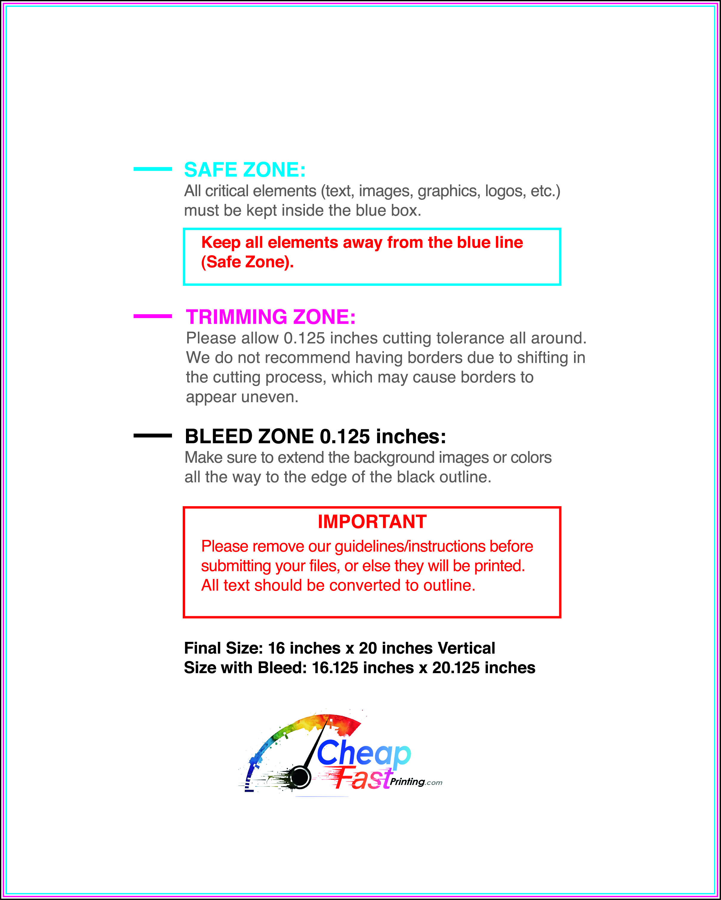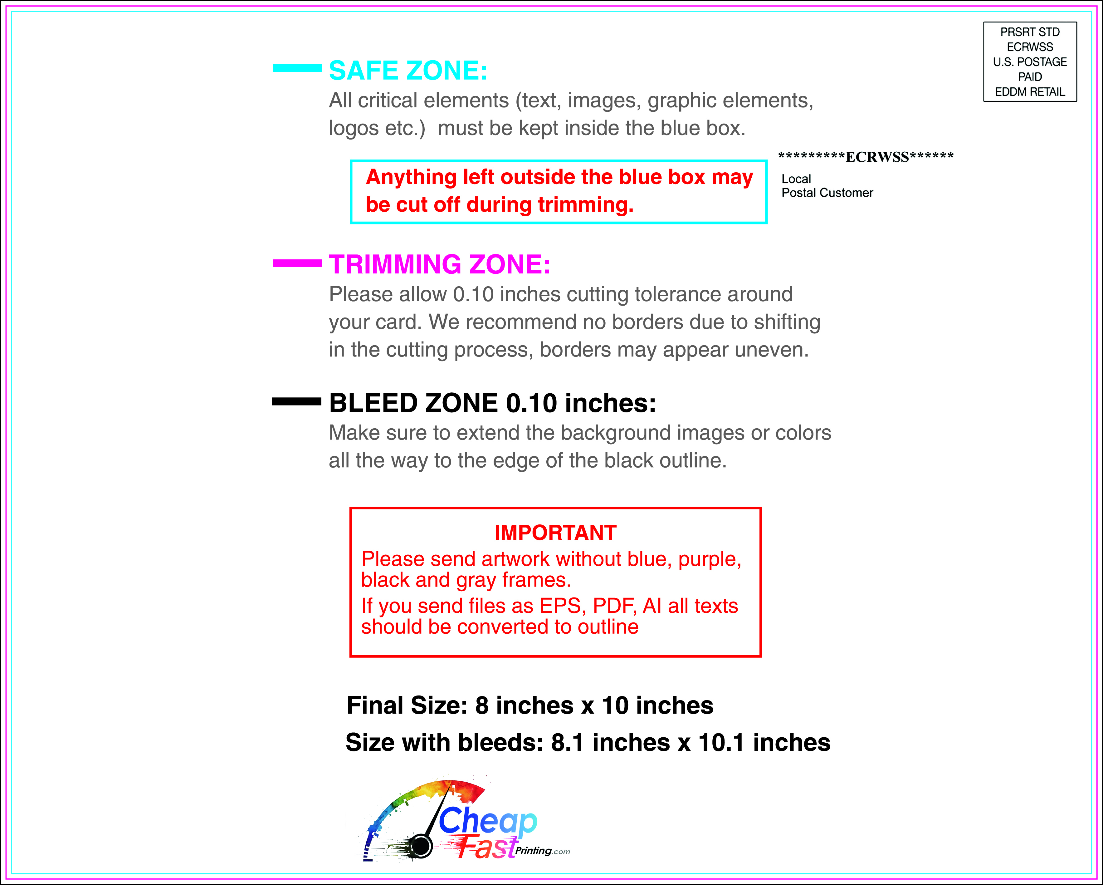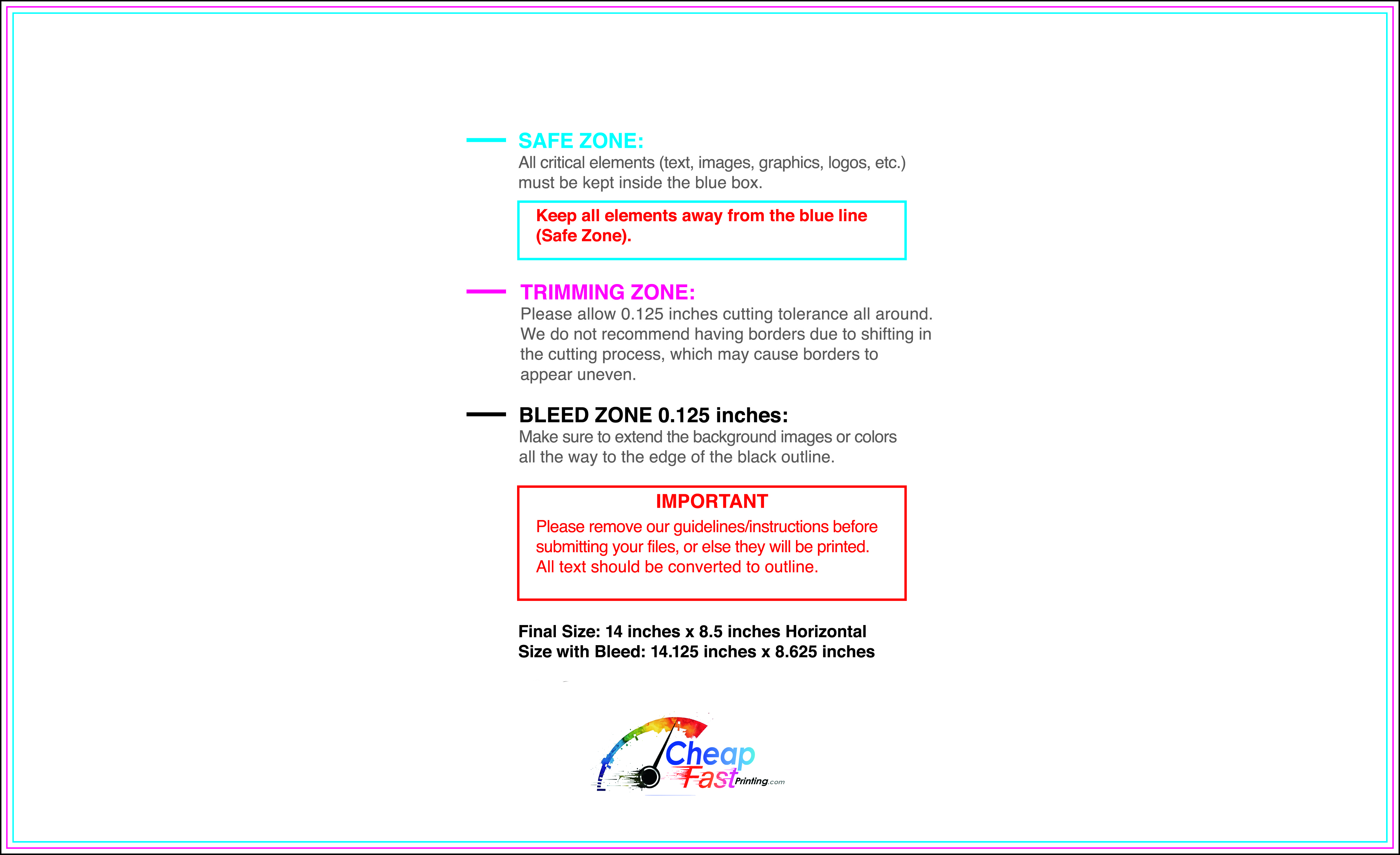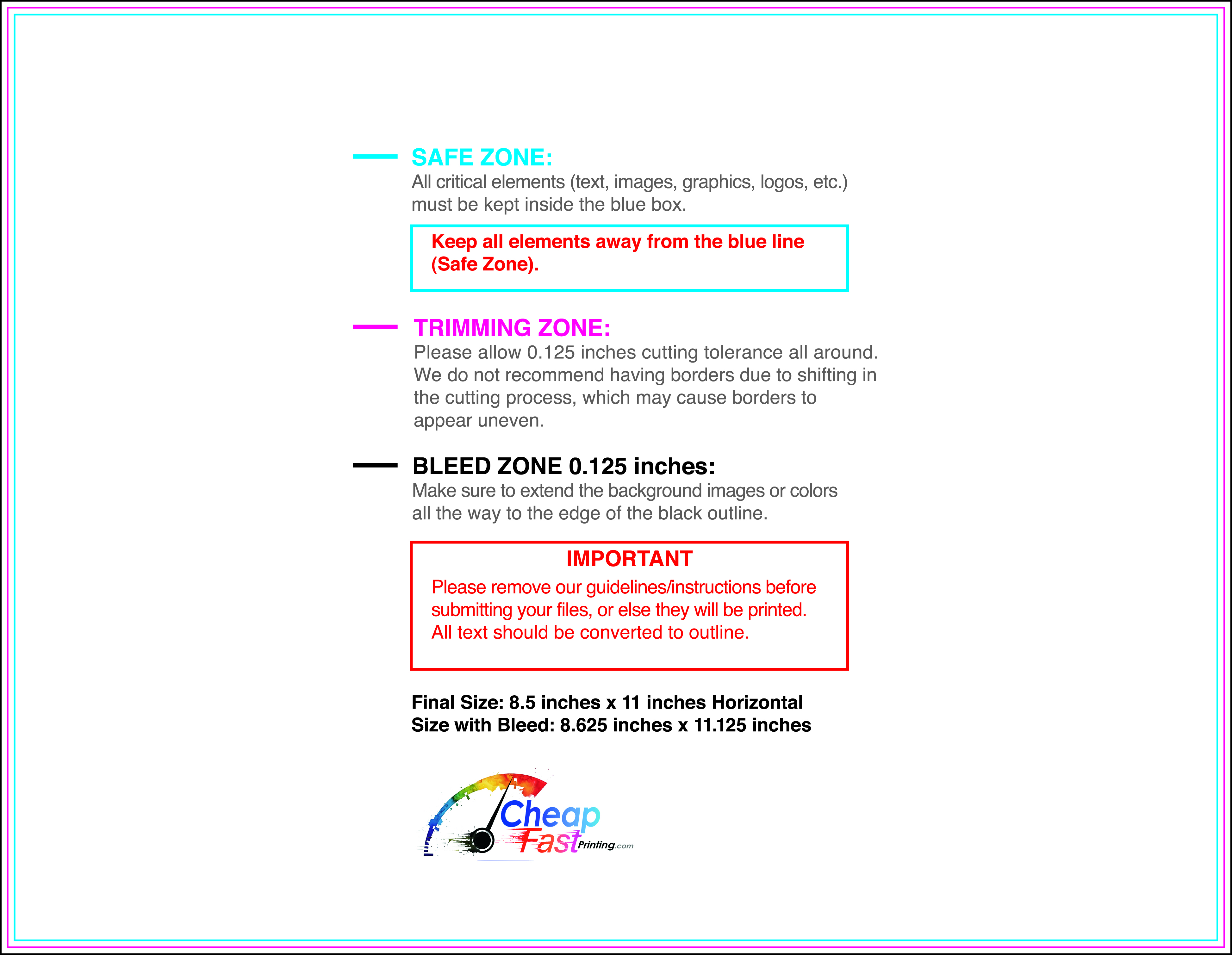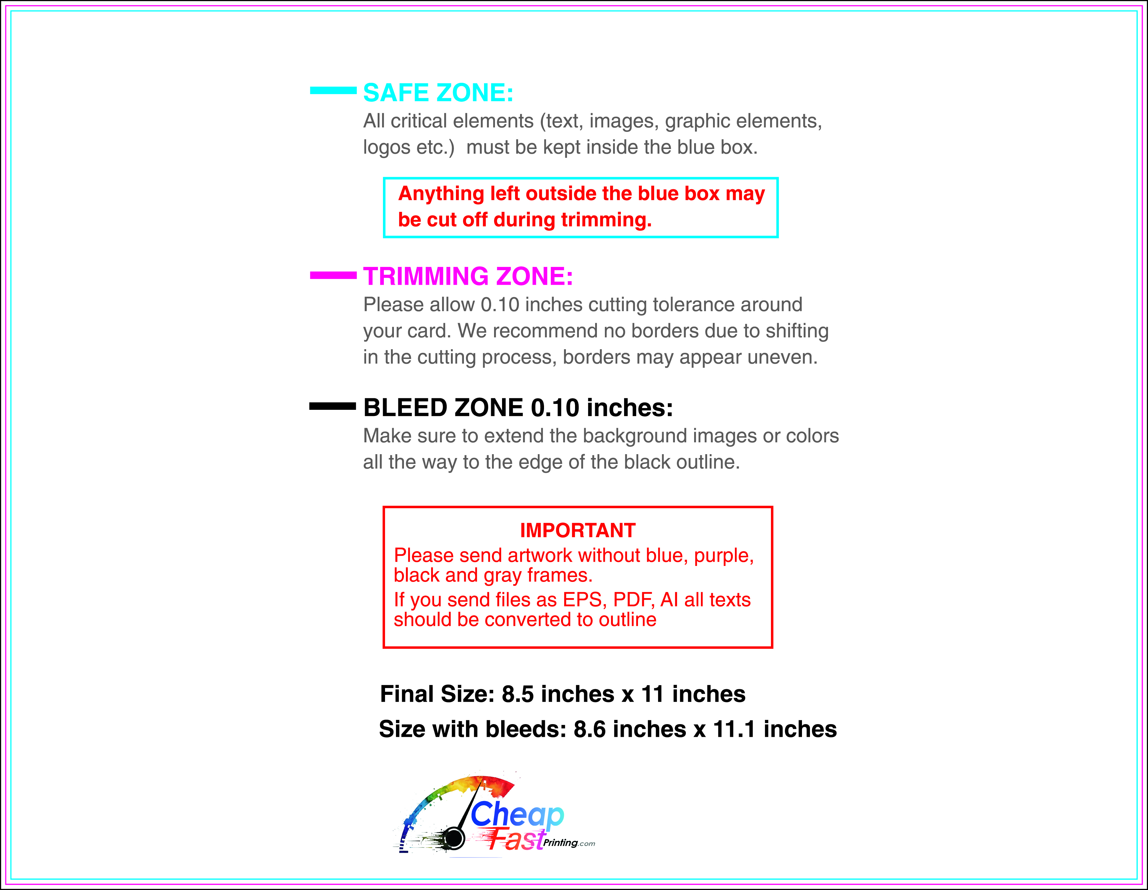 We recommend reviewing the "safe zone" markers within each file. This area ensures that your logos, contact information, and critical text remain safely away from the cutting blade. In our years of experience, a project that ignores these markers often requires a costly reprint, something we want to help you avoid.