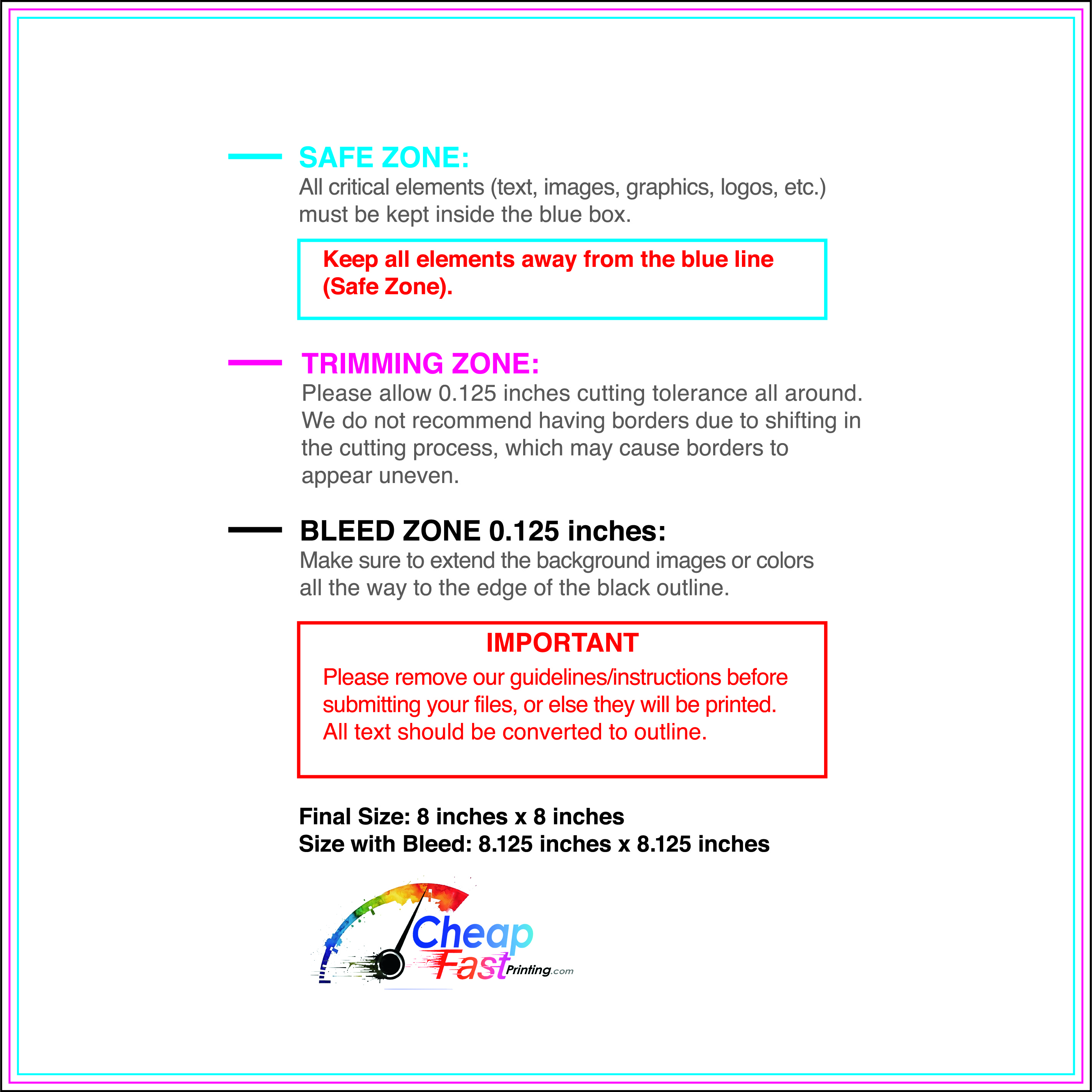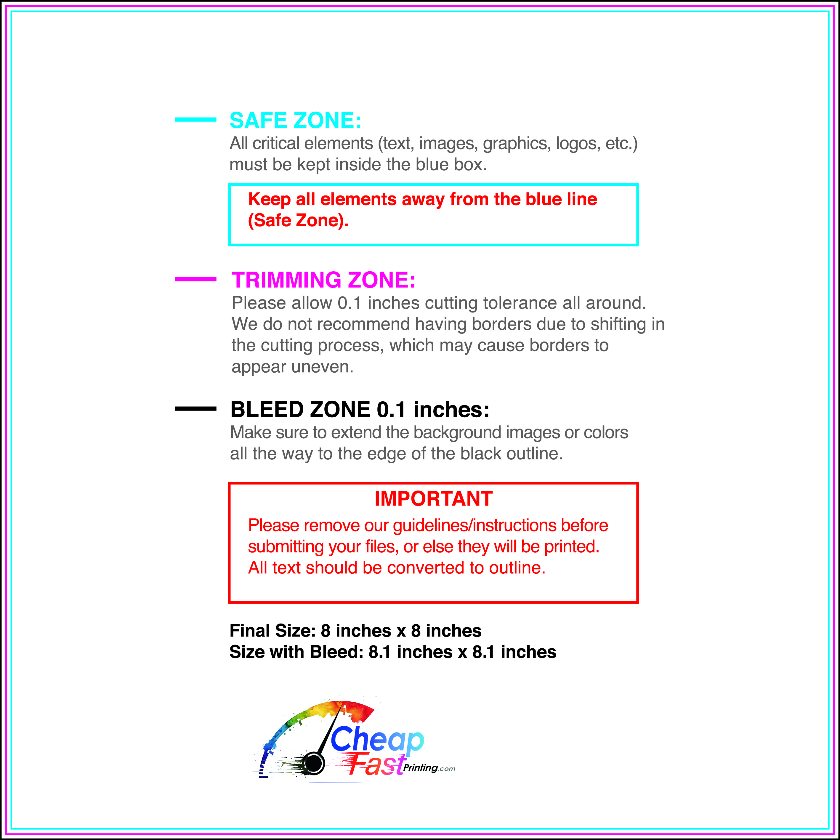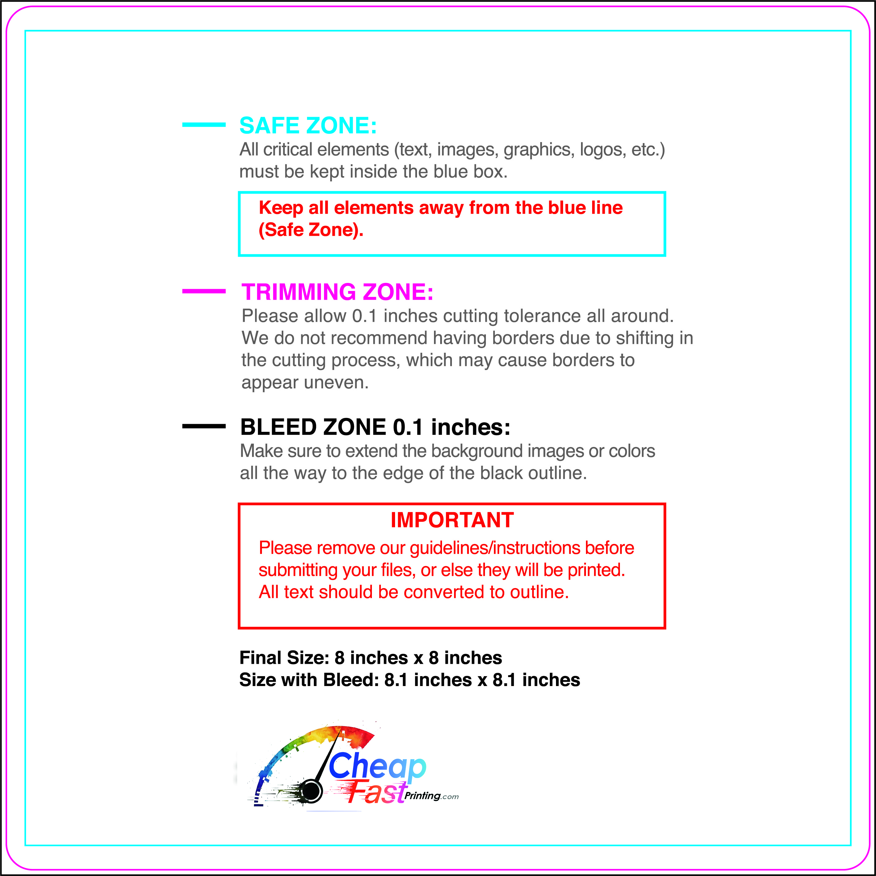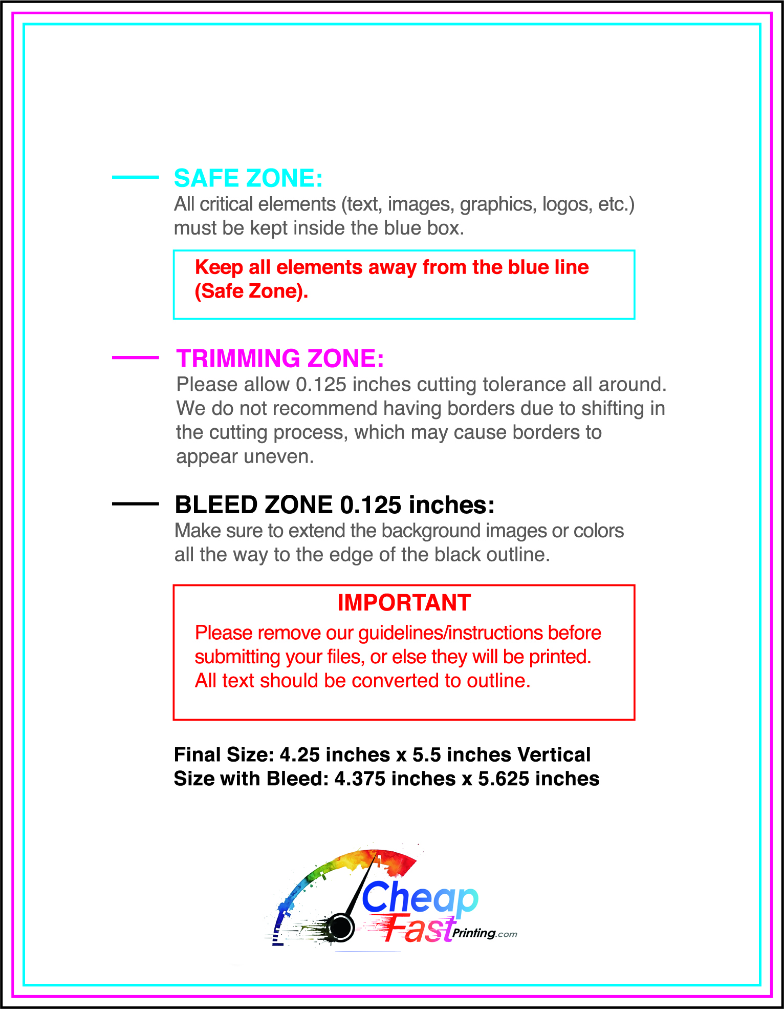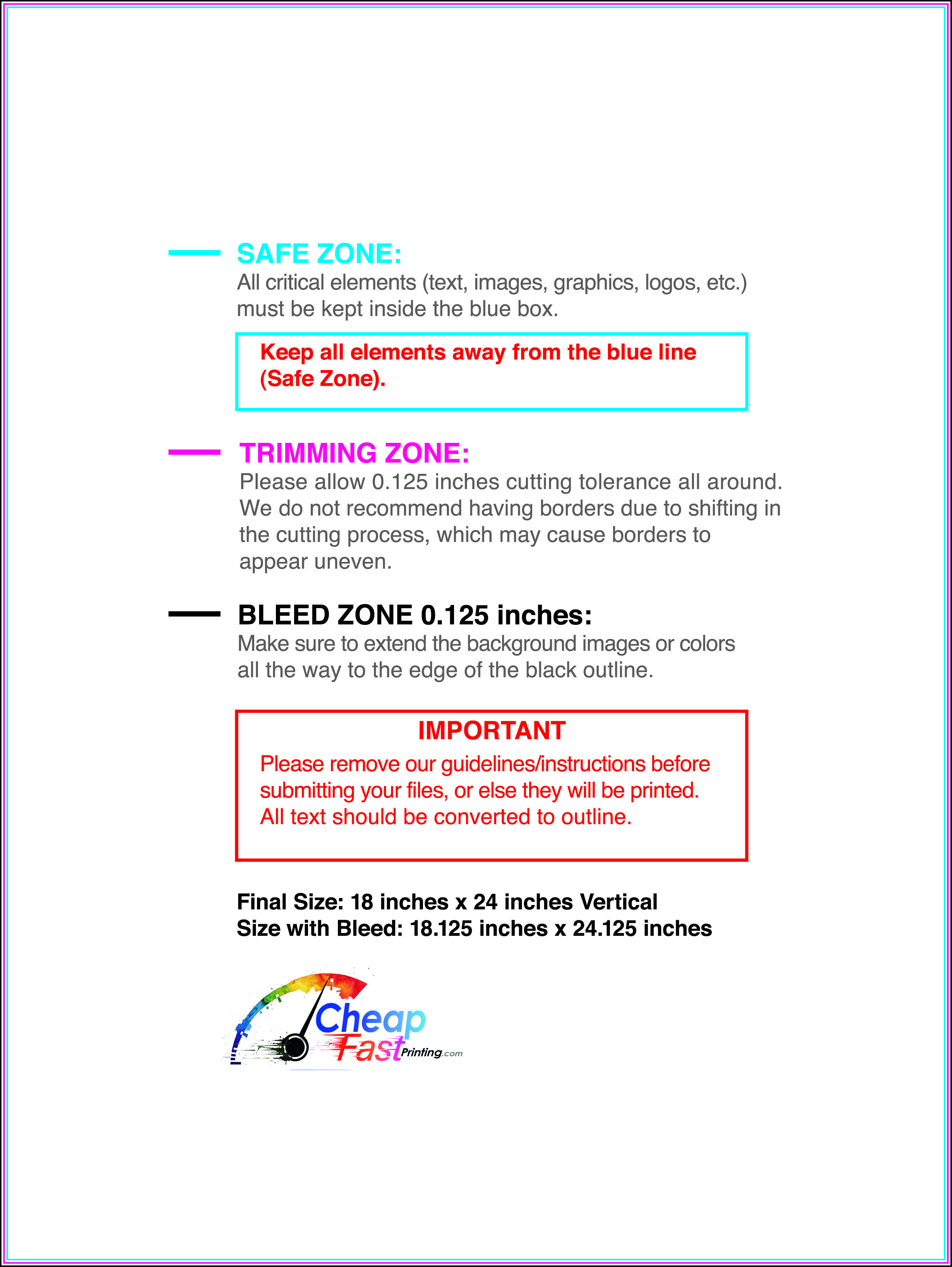 We recommend reviewing the "safe zone" markers within each file. This area ensures that your logos, contact information, and critical text remain safely away from the cutting blade. In our years of experience, a project that ignores these markers often requires a costly reprint, something we want to help you avoid.