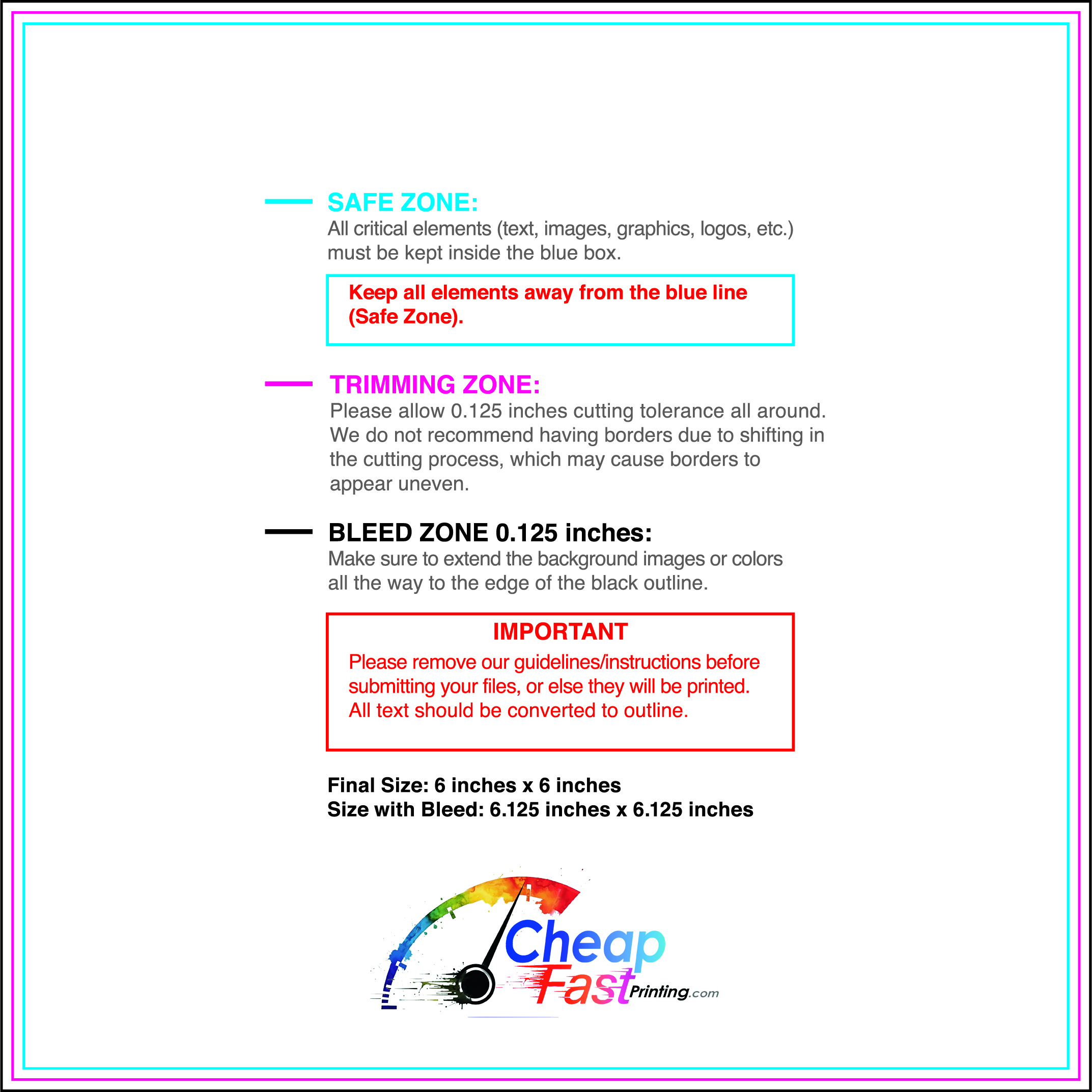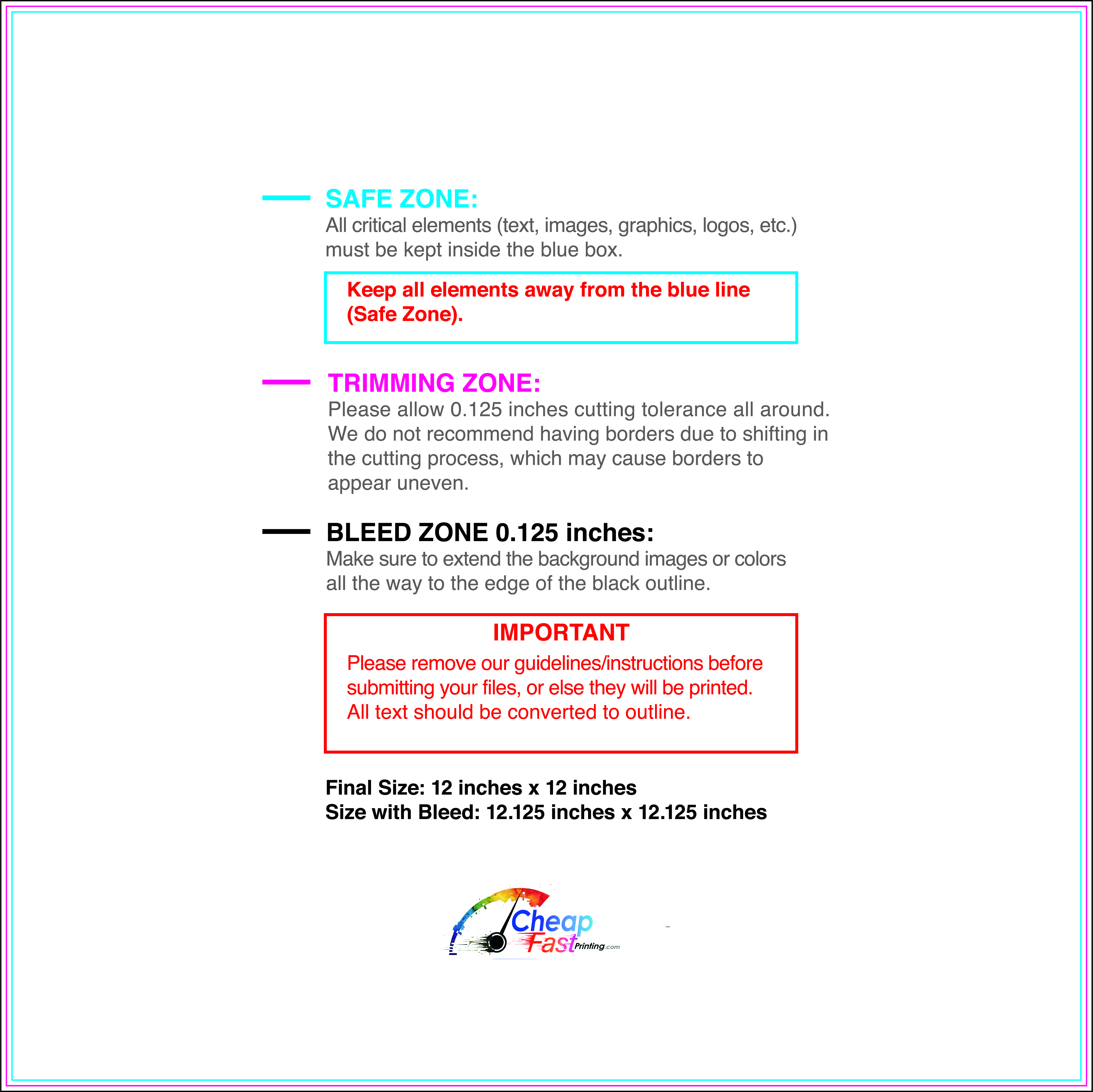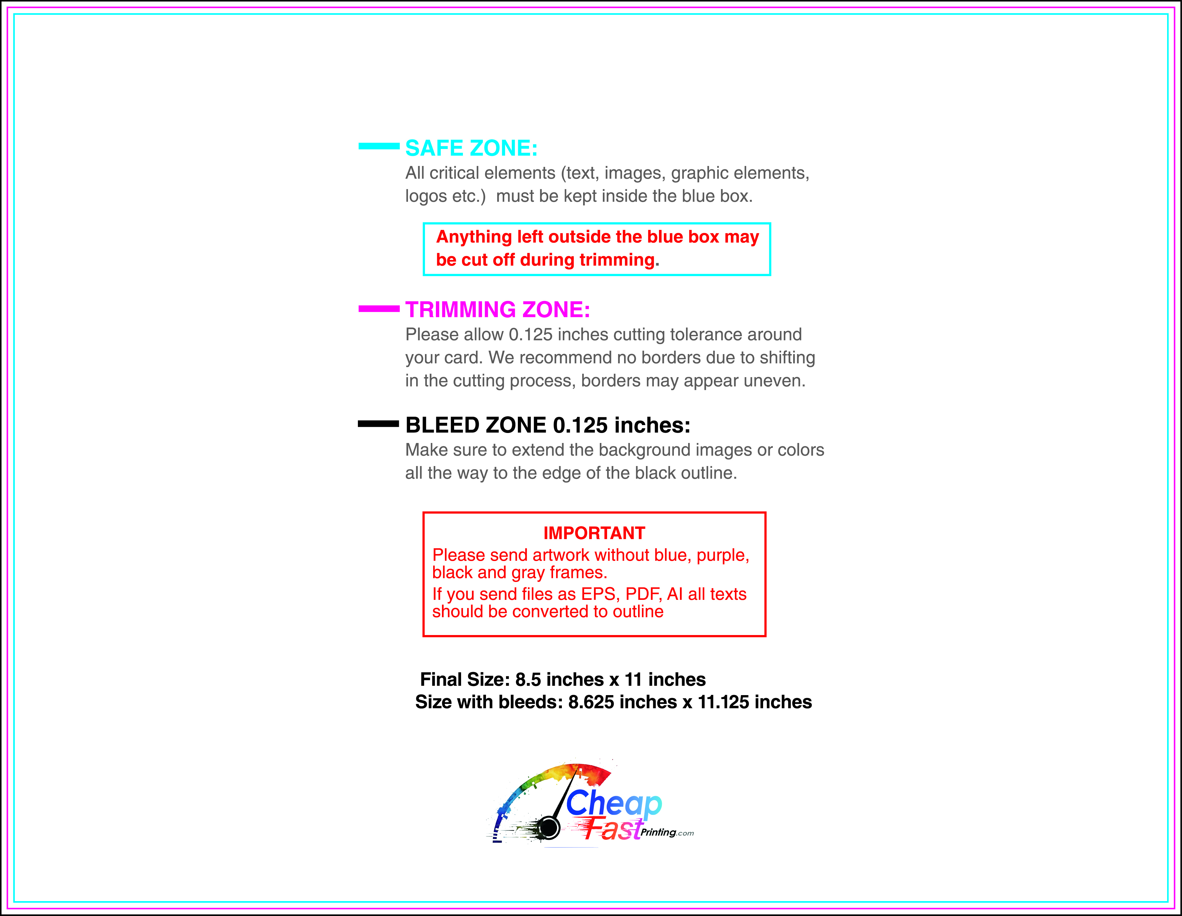 Safety (0.125" inside): This is an imaginary line 0.125" *inside* the trim line. Keep all important text, logos, and content inside this safety line to ensure nothing gets cut off.
