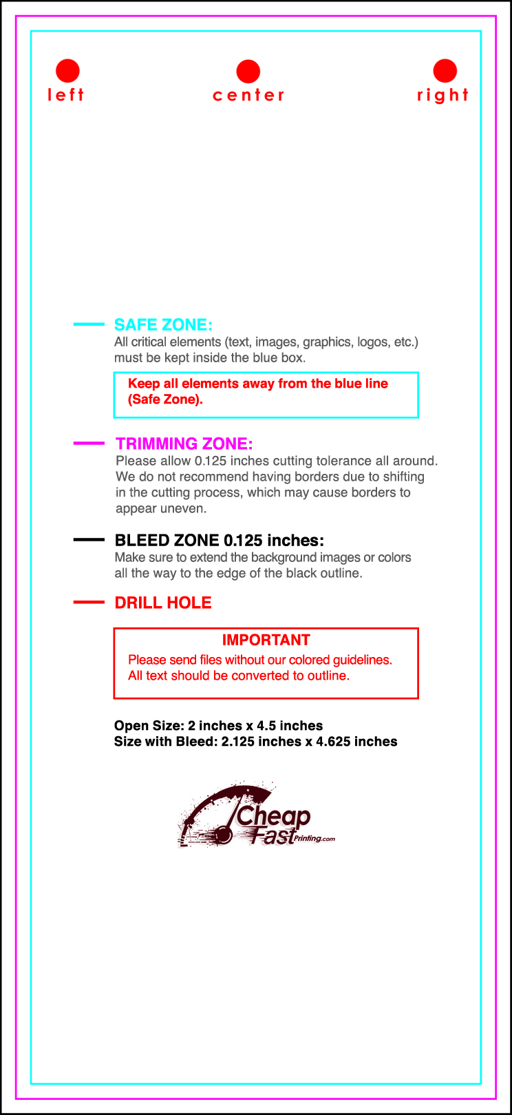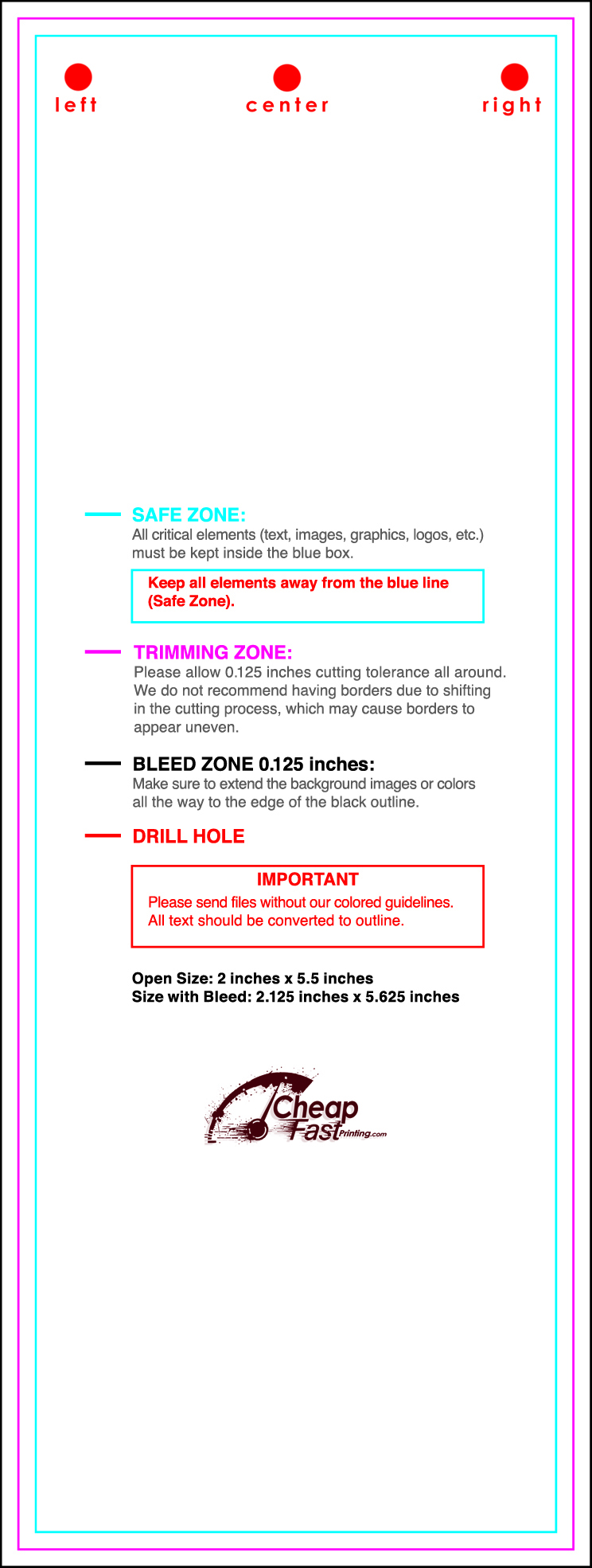 | Safe Zone | Keep text 0.125" away from the trim edge. |